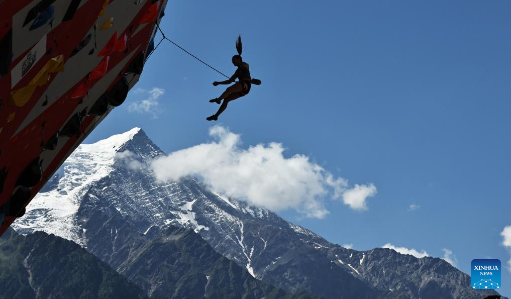 Jessica Pilz of Austria competes during the women's Lead Qualification of sport climbing at the 2025 IFSC Climbing World Cup Speed-Lead in Charmonix, France, July 12, 2025. (Xinhua/Gao Jing)