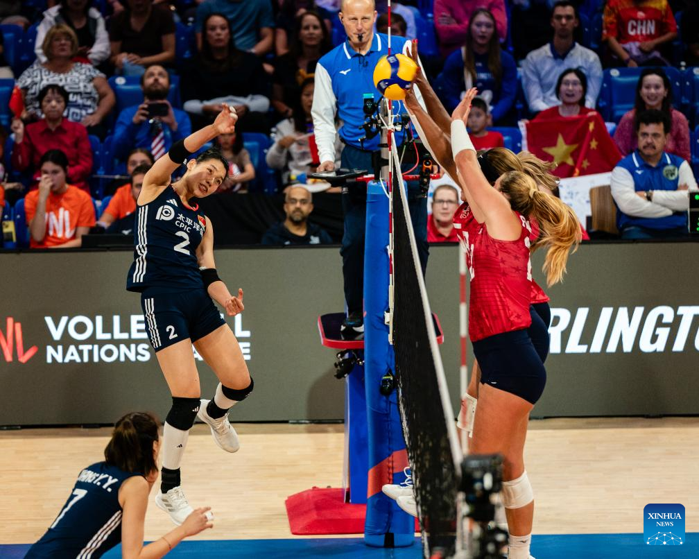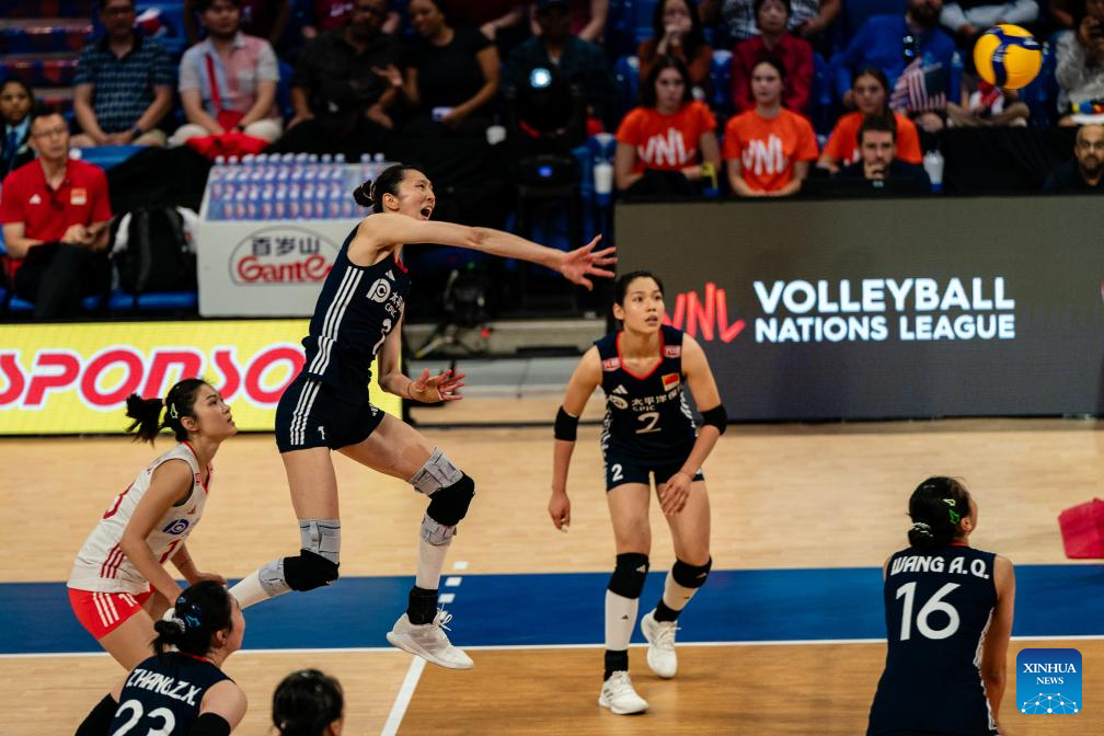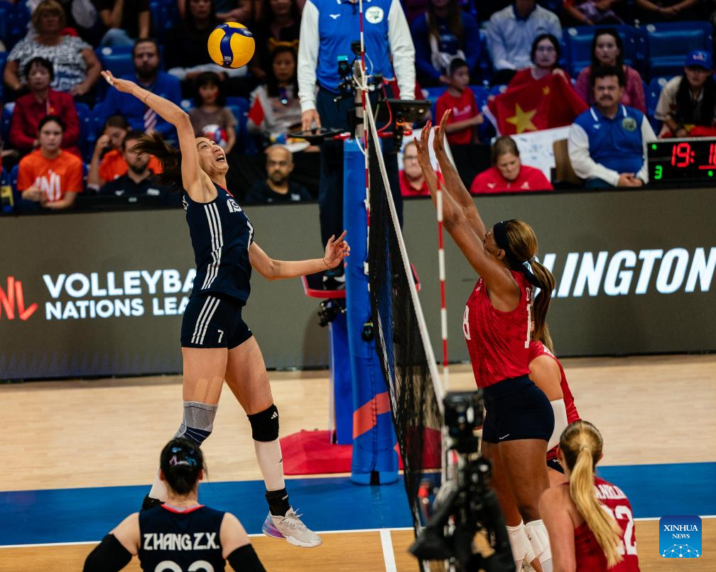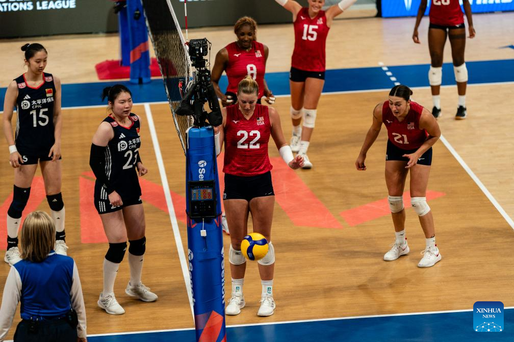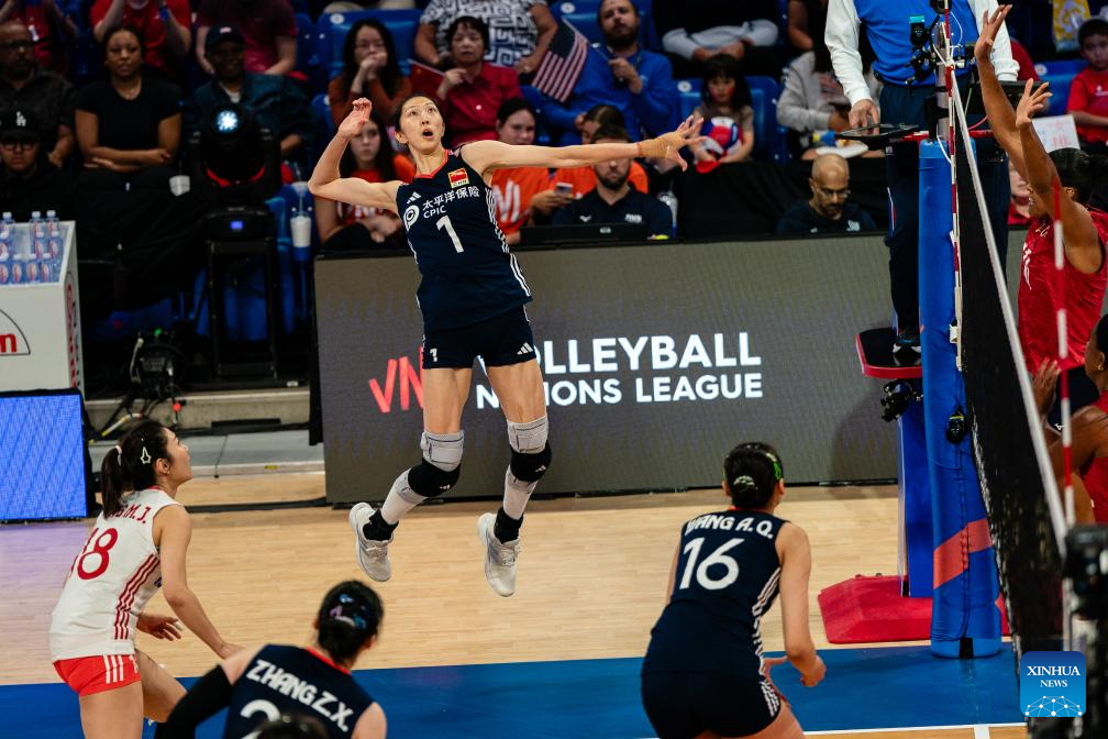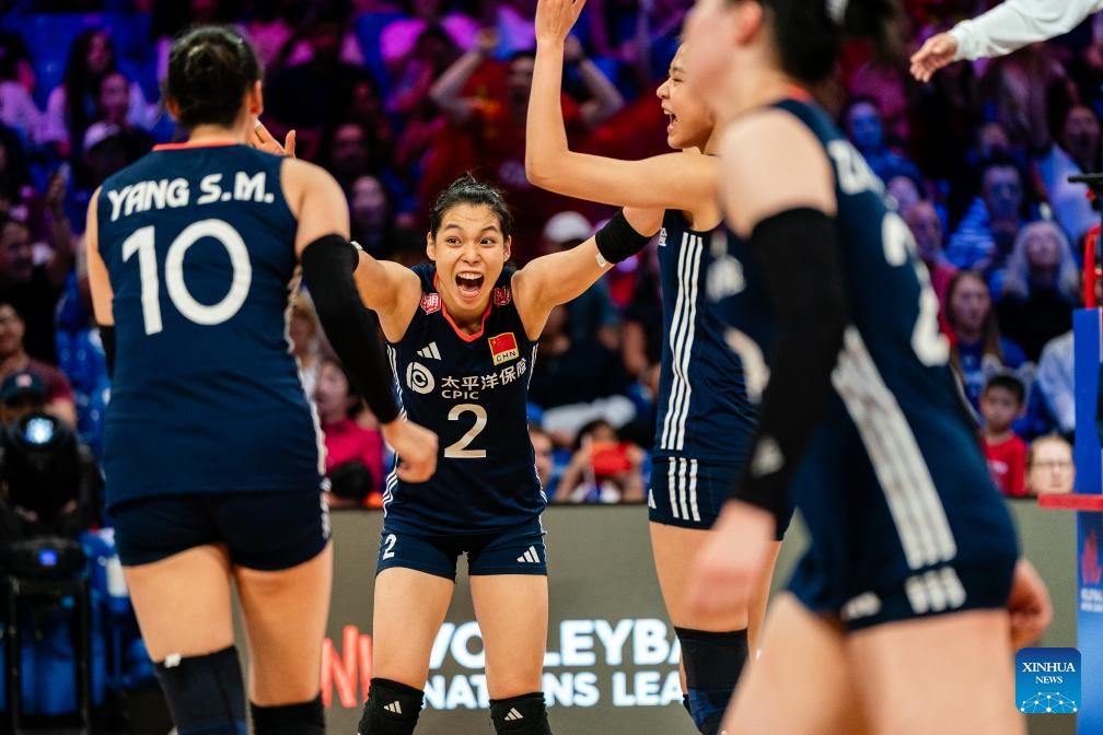ARLINGTON, United States, July 13 (Xinhua) -- China claimed another come-from-behind 3-2 victory over the United States on Sunday, closing the women's Volleyball Nations League (VNL) preliminaries with four consecutive wins.