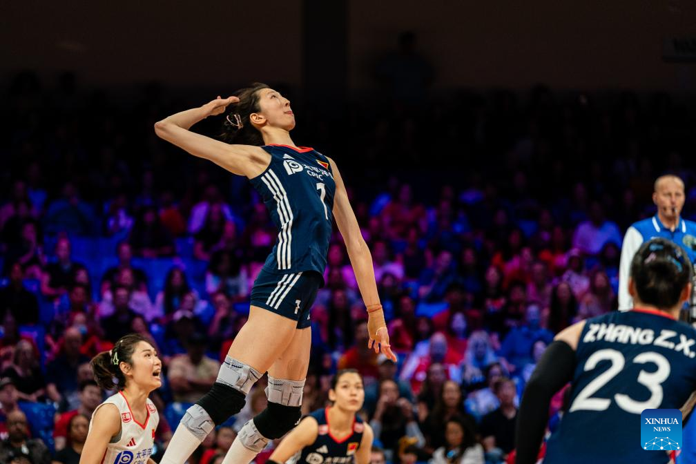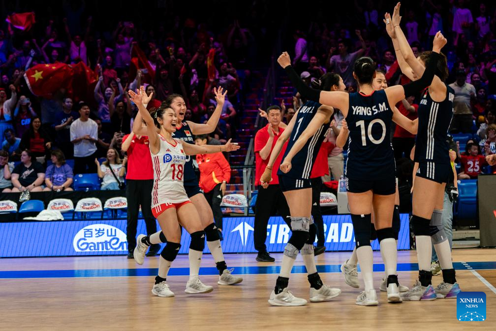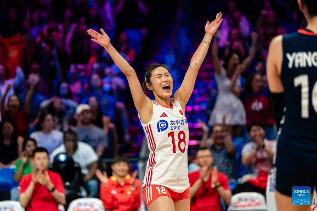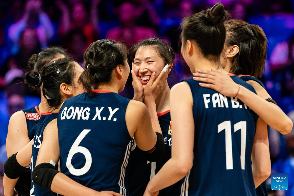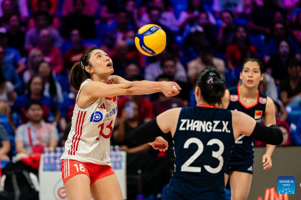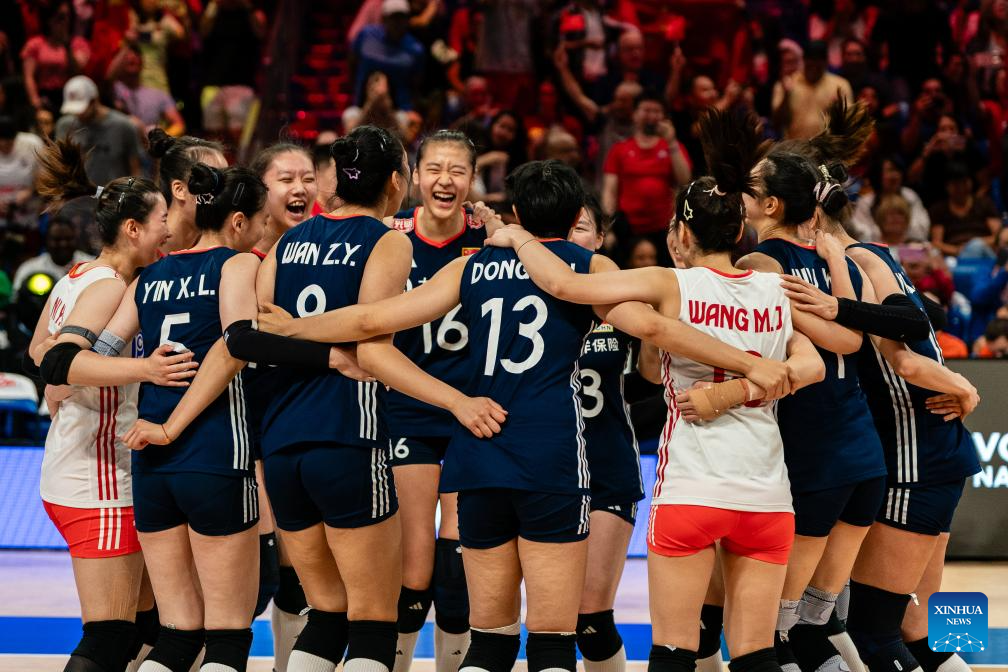 ARLINGTON, United States, July 13 (Xinhua) -- China claimed another come-from-behind 3-2 victory over the United States on Sunday, closing the women's Volleyball Nations League (VNL) preliminaries with four consecutive wins.