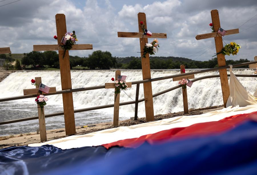 A creative fireworks show is staged in Liuyang, central China's Hunan Province, July 12, 2025. Liuyang, a small city known as China's "fireworks capital," has organized 26 creative fireworks events in the first half of 2025. These events have attracted over 1.5 million tourists, stimulating consumer spending of nearly four billion yuan (about 558 million U.S. dollars). (Xinhua/Chen Sihan)A dance instructor demonstrates a move to children attending a summer class in Kaiyang County, southwest China's Guizhou Province, July 13, 2025. (Photo by Yuan Fuhong/Xinhua)Staff members work on the final section of the 750-kilovolt (kV) loop in Minfeng County of Hotan Prefecture, northwest China's Xinjiang Uygur Autonomous Region, July 13, 2025. China has finished construction of a 4,197-km extra-high voltage power transmission loop around the Tarim Basin, home to the country's largest desert, marking a major infrastructure milestone in southern Xinjiang Uygur Autonomous Region in northwest China. The final section of the 750-kilovolt (kV) loop, now the country's largest of its kind, was connected on Sunday, capping a 15-year project involving nine substations and nearly 10,000 steel towers, according to a subsidiary of State Grid Xinjiang Electric Power Co., Ltd., which constructed the project. (Xinhua/Ding Lei)People are seen at the Tianjin Academy of Fine Arts Art Block in north China's Tianjin, July 13, 2025. The art block, which opened to the public recently, was built with the support of Tianjin Academy of Fine Arts. It is Tianjin's first urban renewal program which combines four distinct functions in one: urban block, community, scenic area, as well as campus. (Xinhua/Li Ran)An aerial drone photo taken on early July 13, 2025 shows a view of the Hongshankou Great Wall in Zunhua City, north China's Hebei Province. (Photo by Liu Mancang/Xinhua)A girl with a dolphin pattern painted on her face attends a Fisherman's Day celebration in Vladivostok, Russia, July 13, 2025. The Fisherman's Day is observed across Russia on the second Sunday of July. (Photo by Guo Feizhou/Xinhua)Dressed-up dogs are seen during a dog fashion show in Vancouver, Canada, July 12, 2025. An outdoor pet festival kicked off here on Saturday, featuring a dog fashion show. (Photo by Liang Sen/Xinhua)People look at a modified vehicle during the 2025 ImportFest in Toronto, Canada, on July 12, 2025. Showcasing hundreds of modified vehicles from across Canada and the United States, the annual one-day event was held here on Saturday. (Photo by Zou Zheng/Xinhua)Wooden crosses are erected on the bank of the Guadalupe River to honor the victims of a deadly flood in Kerrville, Texas, the United States, on July 12, 2025. (Photo by Nick Wagner/Xinhua)Jessica Pilz of Austria competes during the women's Lead Qualification of sport climbing at the 2025 IFSC Climbing World Cup Speed-Lead in Charmonix, France, July 12, 2025. (Xinhua/Gao Jing)■