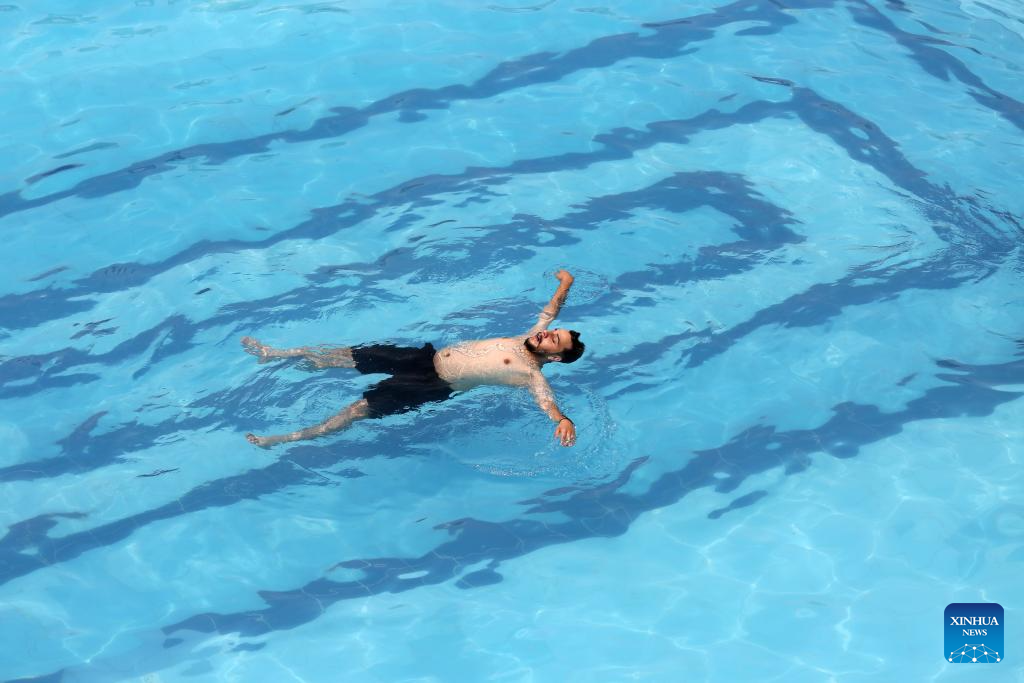 A man cools off at a water park amid a heatwave in Baghdad, Iraq, on July 13, 2025. (Xinhua/Khalil Dawood)