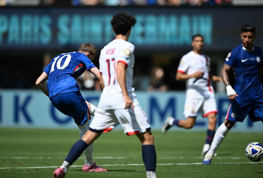 NEW YORK, July 13 (Xinhua) -- Cole Palmer scored twice and provided an assist in the first half to lead Chelsea to a 3-0 victory over 10-man Paris Saint-Germain on Sunday, clinching the title in the inaugural edition of the revamped FIFA Club World Cup.