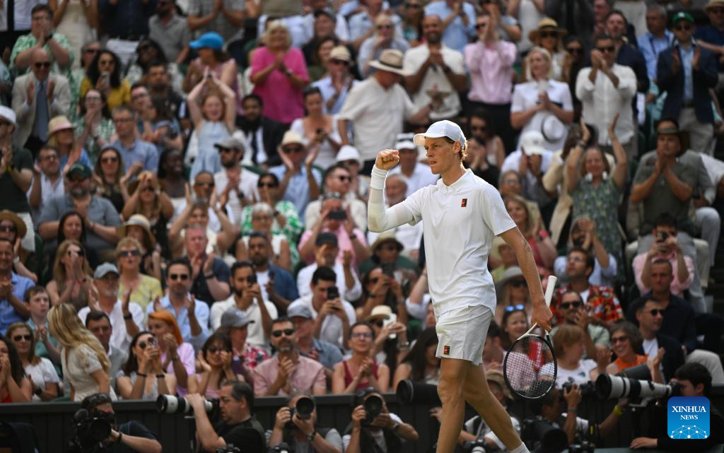 LONDON, July 13 (Xinhua) -- World No. 1 Jannik Sinner held off defending champion Carlos Alcaraz 4-6, 6-4, 6-4, 6-4 to win his first Wimbledon title on Sunday.