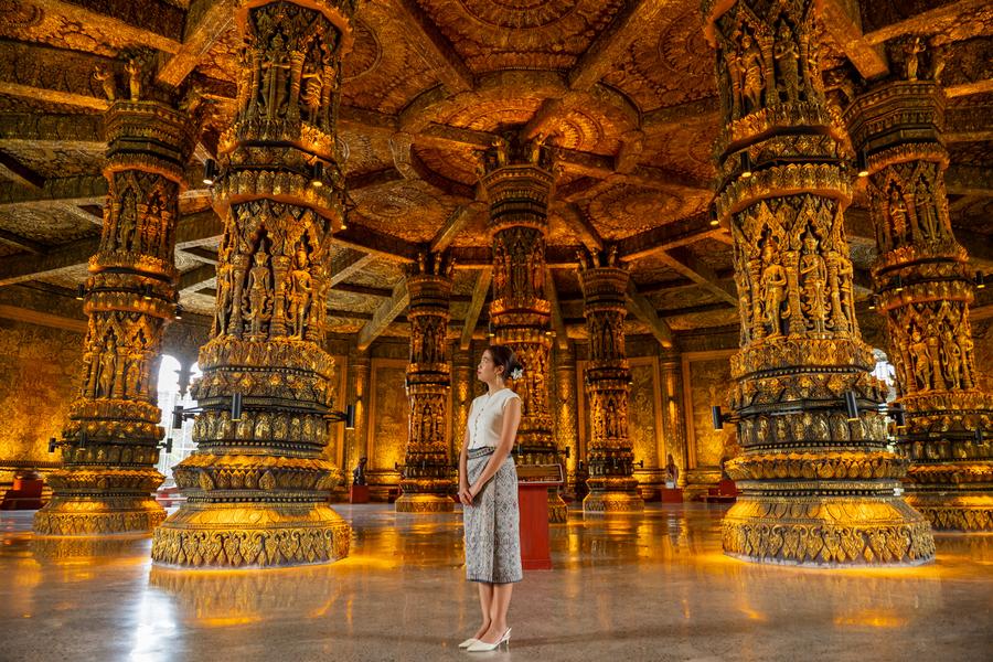 A tourist visits the Lao Art Museum in Vientiane, Laos, July 13, 2025. (Photo by Kaikeo Saiyasane/Xinhua)
