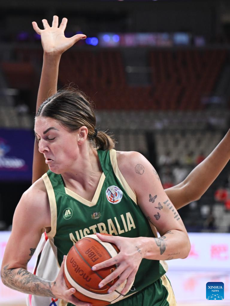 Cayla George of Australia competes during the Group B match between Australia and Japan at the FIBA Women's Asia Cup Division A 2025 in Shenzhen, south China's Guangdong Province, July 15, 2025. (Xinhua/Deng Hua)
