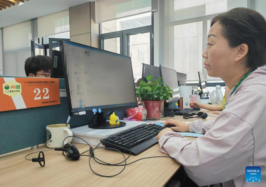 XI'AN, July 15 (Xinhua) -- Sitting in front of a computer, Wang Meimei tagged a paragraph, converted a voice message into text and marked the speaker's emotions. From the basic data processing of Deepseek to the facial recognition systems used in everyday payments, her work quietly supports the technology that powers many people's lives.