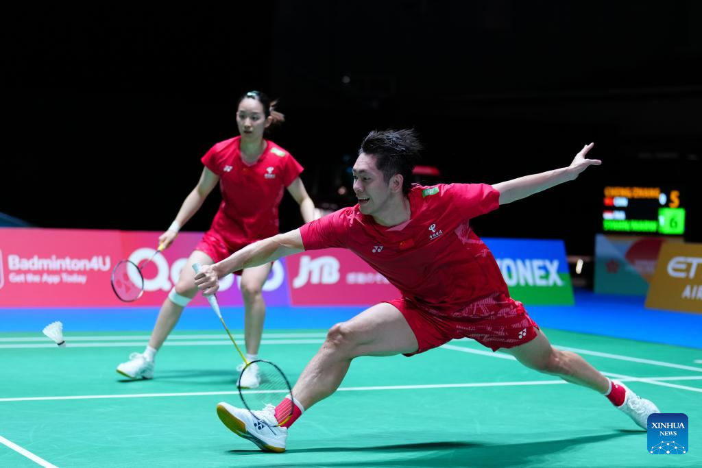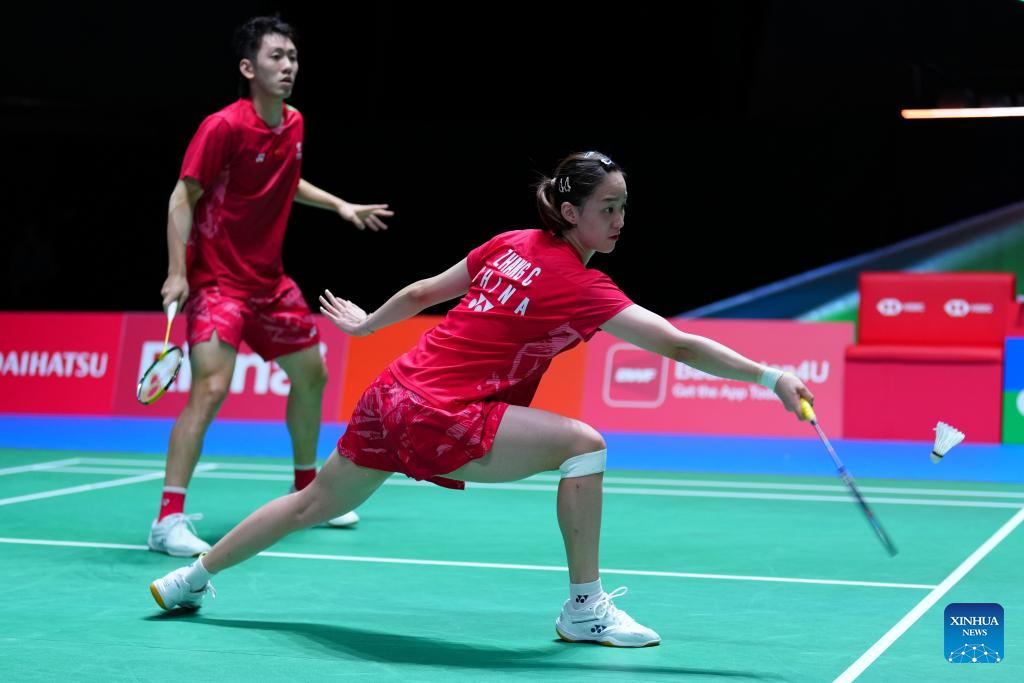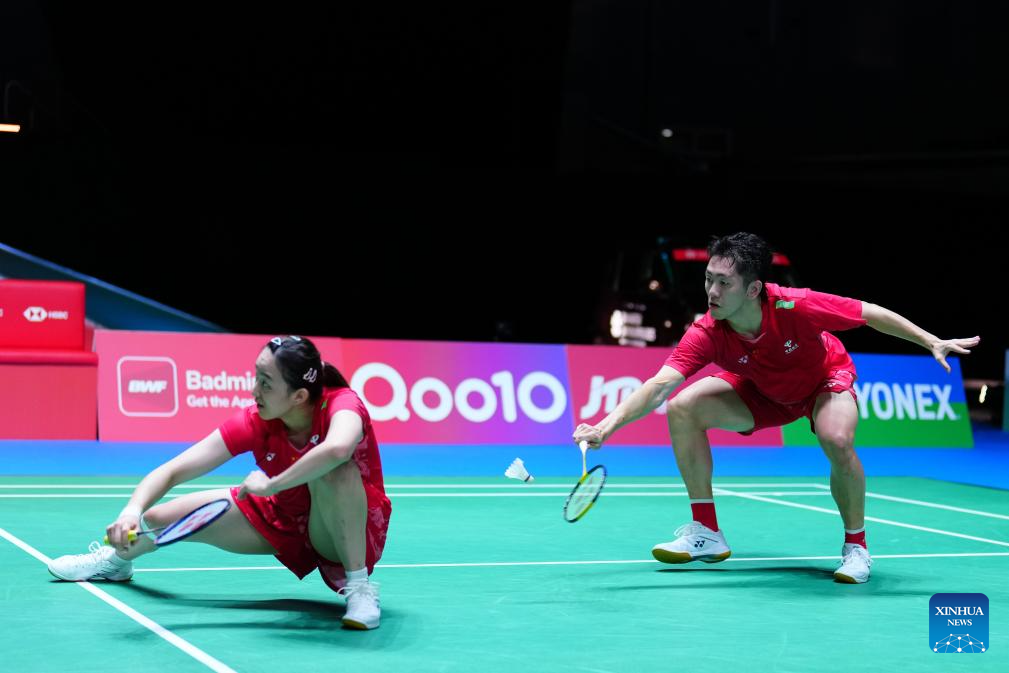 Cheng Xing/Zhang Chi (R) compete during the mixed doubles round of 32 match between Cheng Xing/Zhang Chi of China and Amri Syahnawi/Nita Violina Marwah of Indonesia at the Japan Badminton Open 2025 in Tokyo, Japan, July 15, 2025. (Xinhua/Jia Haocheng)
