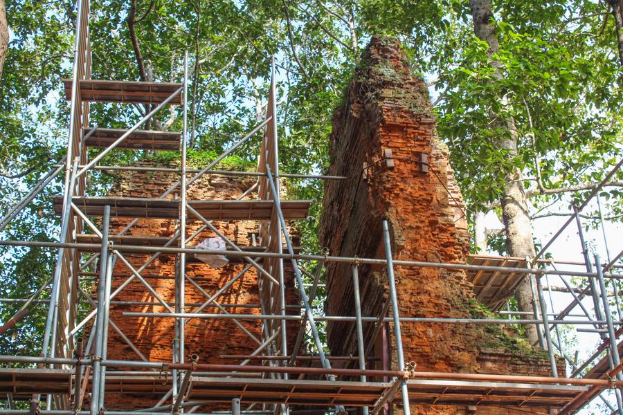 PHNOM PENH, July 15 (Xinhua) -- Archaeologists have been restoring the ninth dilapidated brick tower of Bakong temple in Cambodia's famed Angkor Archaeological Park, the APSARA National Authority (ANA) said in a news release on Monday.