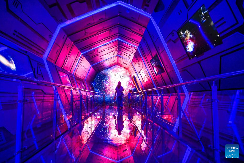 This photo taken on July 10, 2025 shows people visiting a planetarium in Kedu Town, Pingtang County of southwest China's Guizhou Province. (Xinhua/Yang Wenbin)