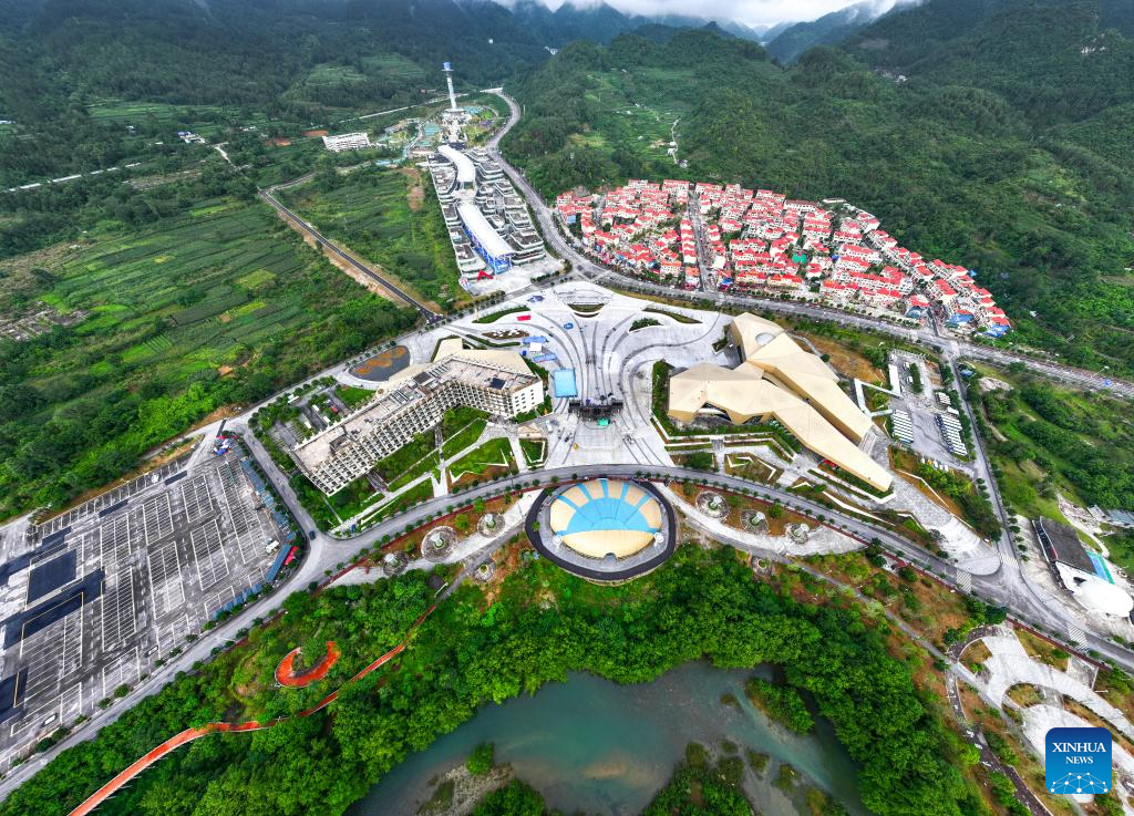 An aerial drone photo taken on July 9, 2025 shows a view at the "Astronomy Town" in Kedu Town, Pingtang County of southwest China's Guizhou Province. (Xinhua/Yang Wenbin)