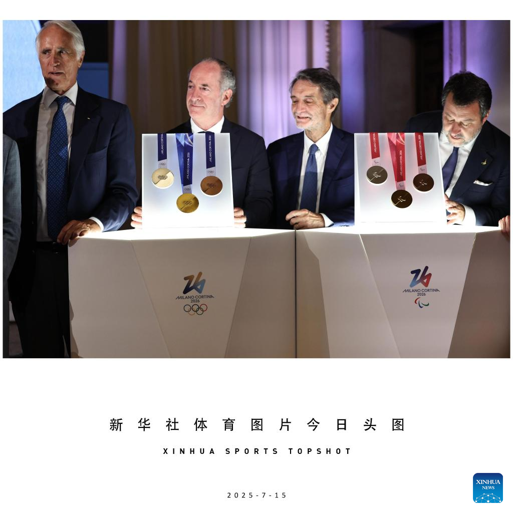 The medals for Milano Cortina 2026 Olympic and Paralympic Winter Games are displayed during the unveiling ceremony in Palazzo Balbi, Venice, Italy, on July 15, 2025. (Xinhua/Li Jing)