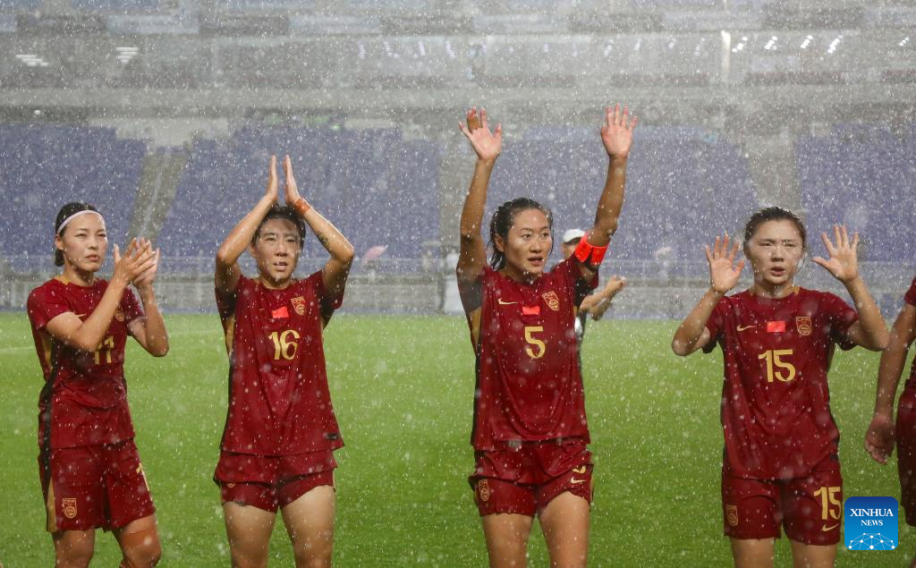 Players of China greet the audience after the women's football match between Japan and China at the EAFF (East Asian Football Federation) E-1 Football Championship 2025 Final in Suwon, South Korea, July 16, 2025. (Xinhua/Yao Qilin)