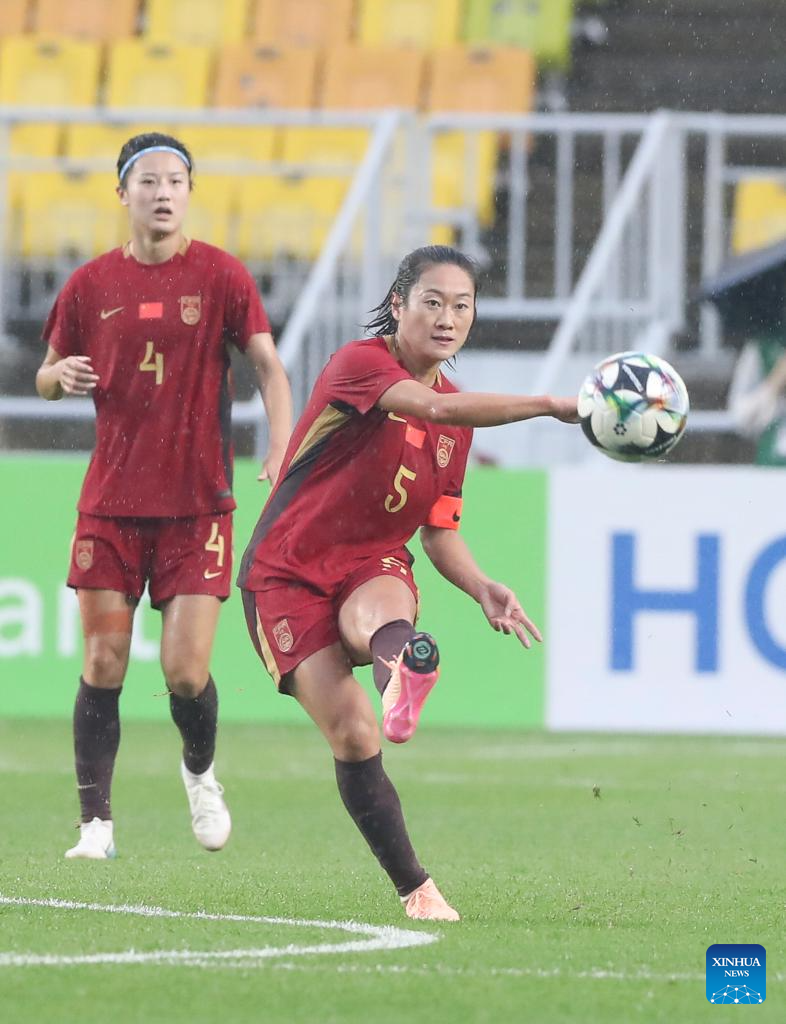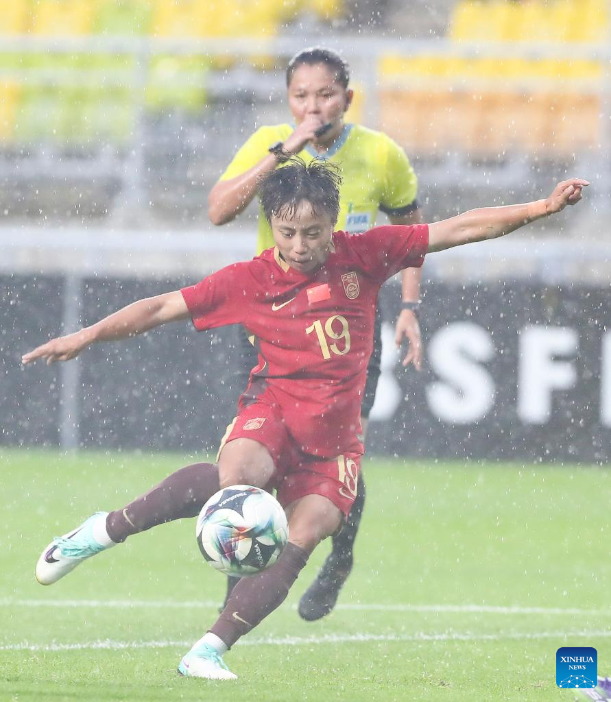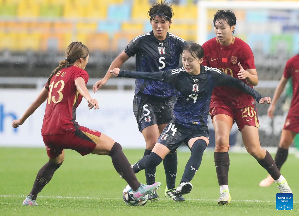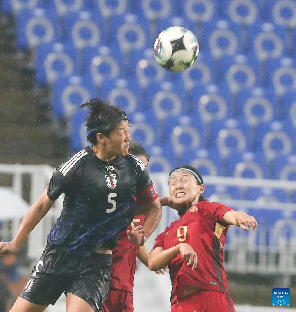 Wu Haiyan (R) of China competes during the women's football match between Japan and China at the EAFF (East Asian Football Federation) E-1 Football Championship 2025 Final in Suwon, South Korea, July 16, 2025. (Xinhua/Yao Qilin)