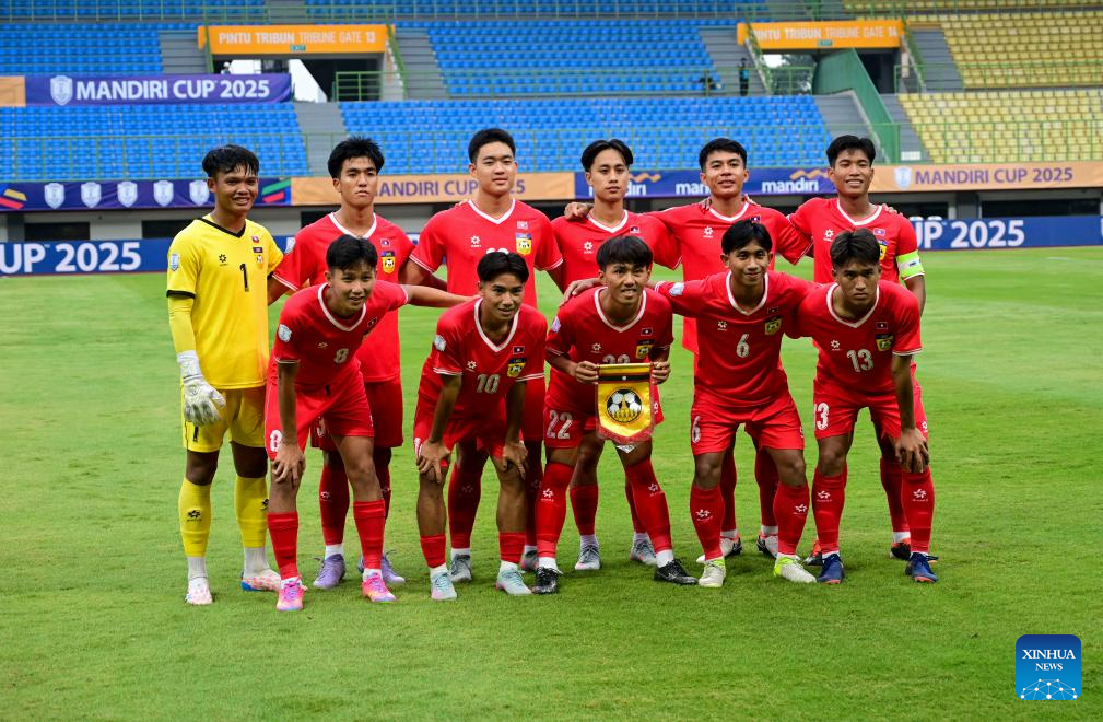 Laos' players pose for a group photo before the ASEAN Football Federation (AFF) U23 Championship 2025 Group B match between Cambodia and Laos in Bekasi, Indonesia on July 16, 2025. (Xinhua/Zulkarnain)
