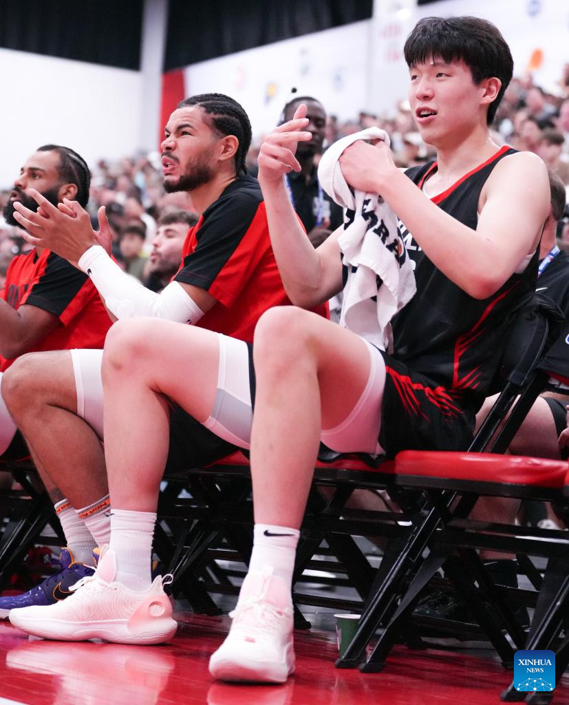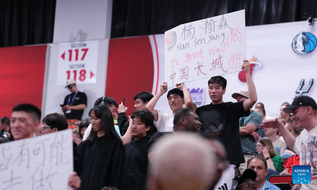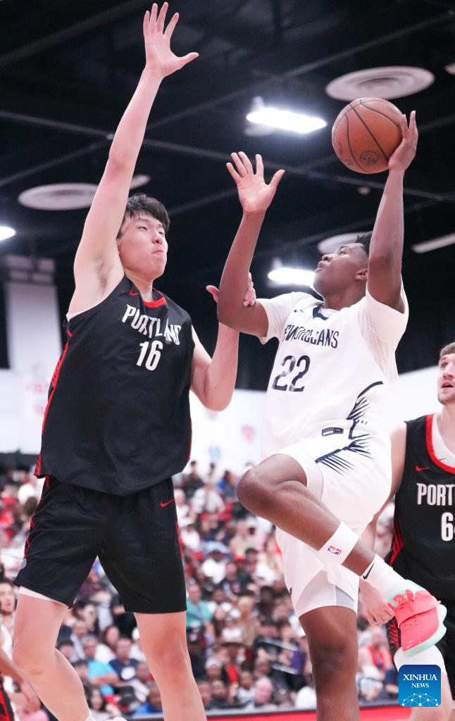 LAS VEGAS, United States, July 15 (Xinhua) -- Chinese center Yang Hansen, the Portland Trail Blazers' rookie, scored 15 points on Tuesday, leading the Blazers to a 93-87 victory over the New Orleans Pelicans in the NBA Summer League.