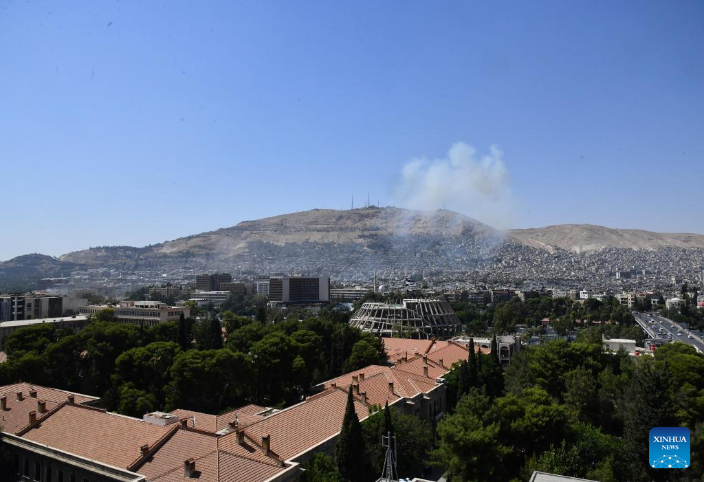 Smoke is seen over Damascus after an Israeli strike hit the Syrian Army General Command headquarters in central Damascus, Syria, July 16, 2025. Israel on Wednesday bombed the Syrian military headquarters compound in the capital Damascus, wounding two people, according to Israeli and Syrian sources. (Photo by Ammar Safarjalani/Xinhua)