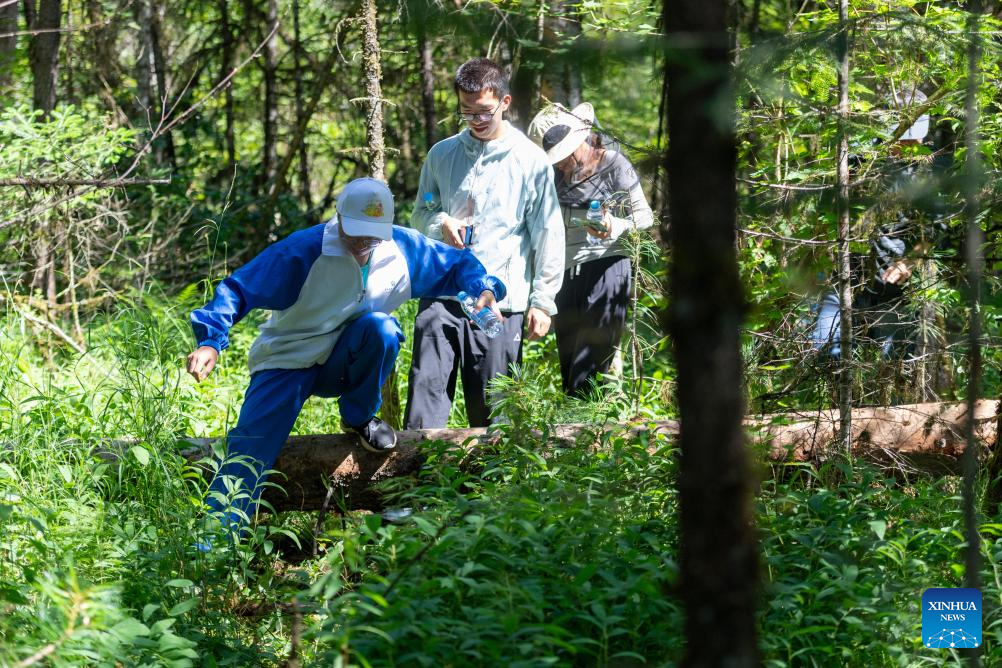 Students from the Northeast Forestry University conduct a field survey at the Liangshui national nature reserve in Yichun City, northeast China's Heilongjiang Province, July 15, 2025. (Xinhua/Xie Jianfei)