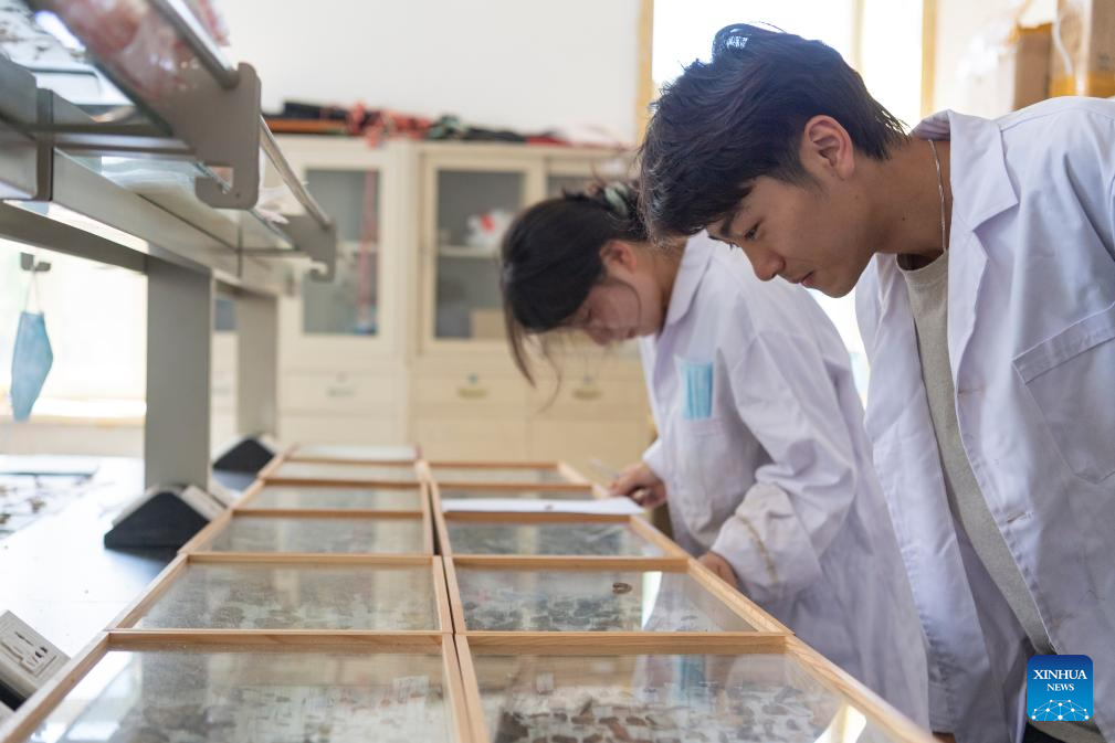 Students from the Northeast Forestry University observe insect specimens at a laboratory in the Liangshui national nature reserve in Yichun City, northeast China's Heilongjiang Province, July 15, 2025. (Xinhua/Xie Jianfei)