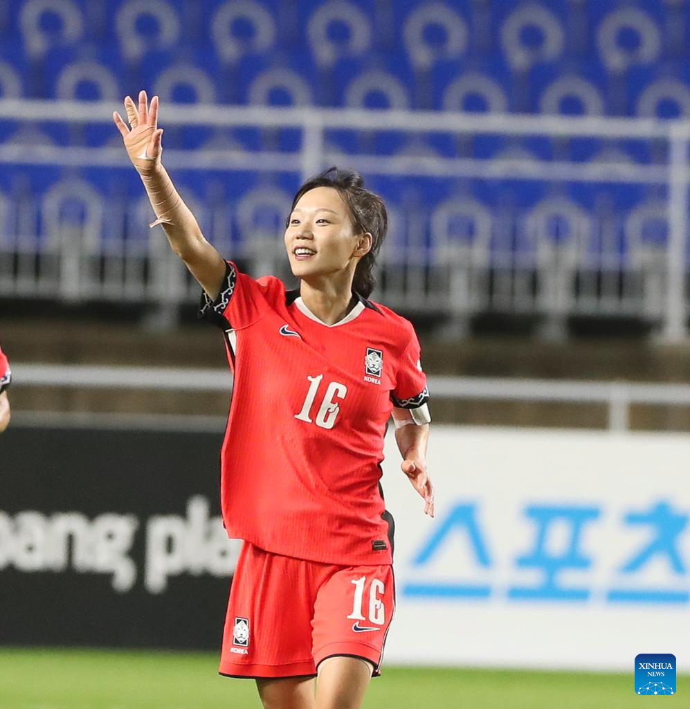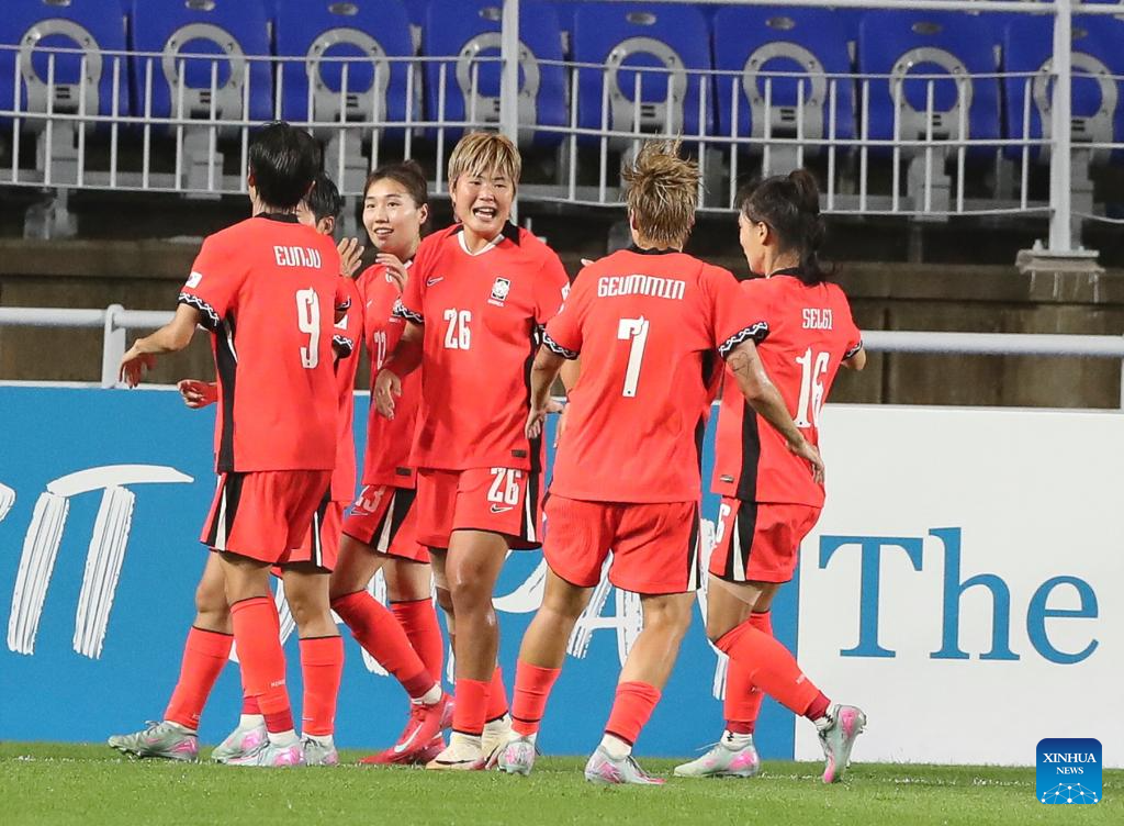 Players of South Korea celebrate a goal during the women's match between South Korea and Chinese Taipei at the EAFF (East Asian Football Federation) E-1 Football Championship 2025 Final in Suwon, South Korea, July 16, 2025. (Xinhua/Yao Qilin)