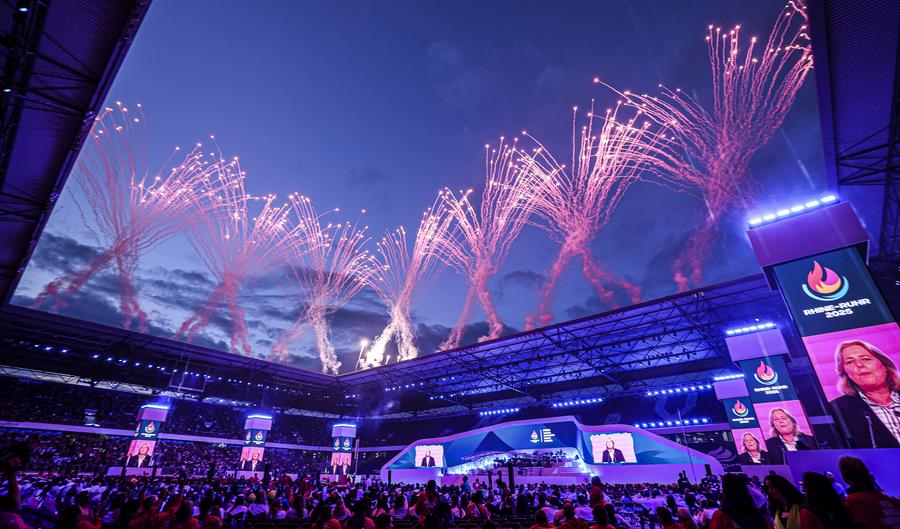 DUISBURG, Germany, July 16 (Xinhua) -- The 2025 Rhine-Ruhr World University Games opened Wednesday at the Schauinsland Reisen Arena, the exact same stadium where the Duisburg 1989 Universiade's opening ceremony was celebrated.