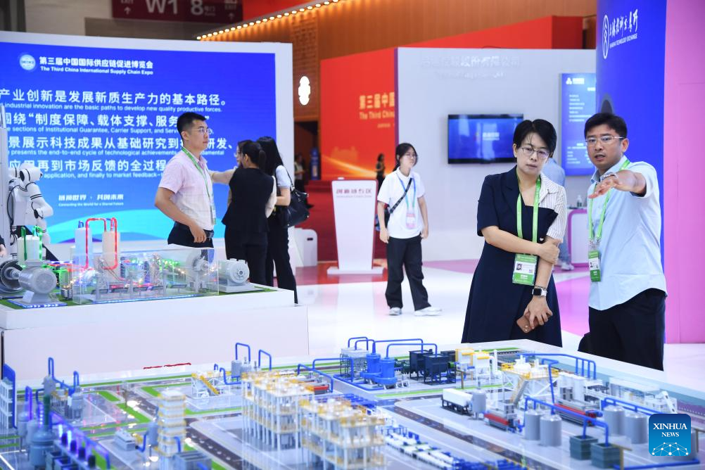 This photo taken on July 17, 2025 shows a scene at the Innovation Chain area at the third China International Supply Chain Expo (CISCE) in Beijing, capital of China, July 17, 2025. Themed on "Connecting the World for a Shared Future," the expo, hosted by the China Council for the Promotion of International Trade, kicked off in Beijing on Wednesday.