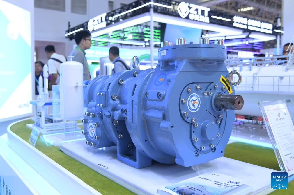 A helium compressor is pictured at the Innovation Chain area of the third China International Supply Chain Expo (CISCE) in Beijing, capital of China, July 17, 2025. Themed on "Connecting the World for a Shared Future," the expo, hosted by the China Council for the Promotion of International Trade, kicked off in Beijing on Wednesday.