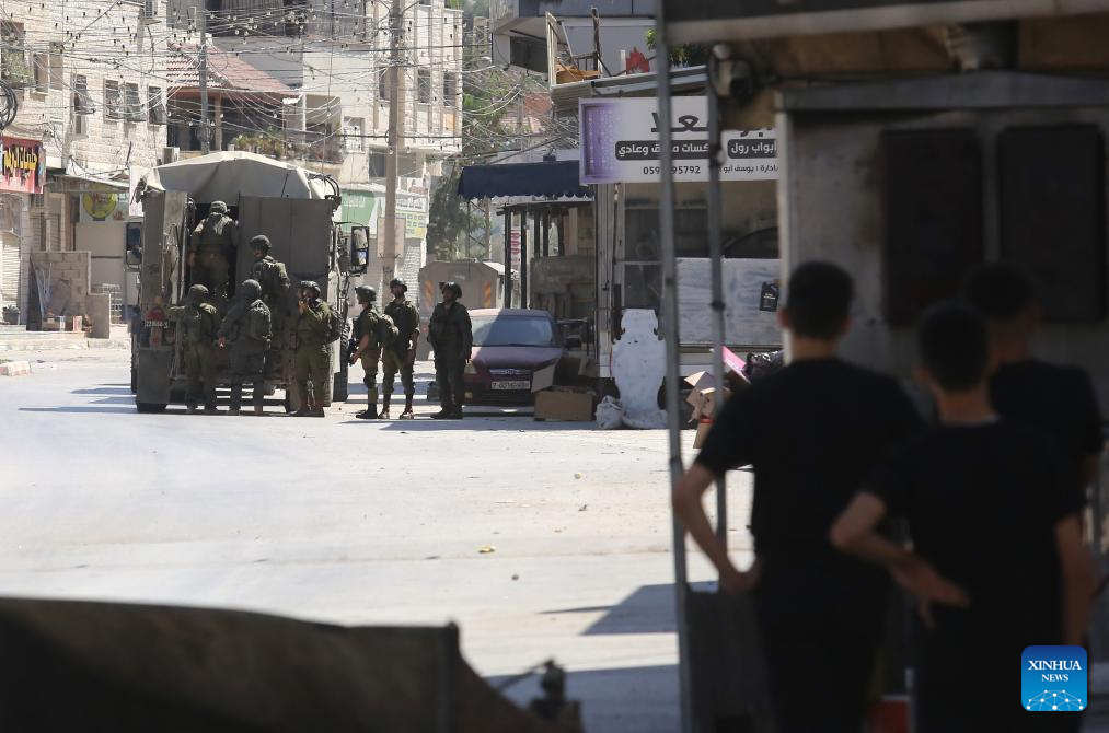 Members of Israeli forces carry out an operation in Qabatiya town, south of the West Bank city of Jenin, on July 17, 2025. (Photo by Nidal Eshtayeh/Xinhua)