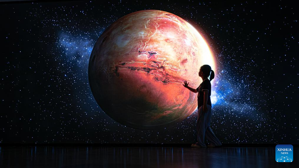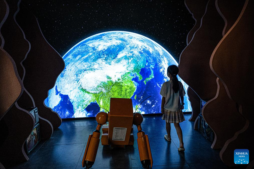 A girl visits a science fiction-themed planetary science experience exhibition at China Building Science Museum in Wuhan, central China's Hubei Province, July 18, 2025. The exhibition opened here on Friday featuring over 10 interactive exhibits and more than 30 meteorites on display. It will last until March 29, 2026. (Xinhua/Xiao Yijiu)