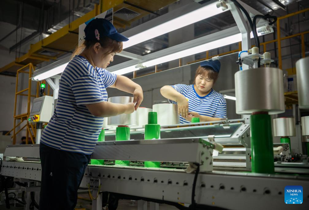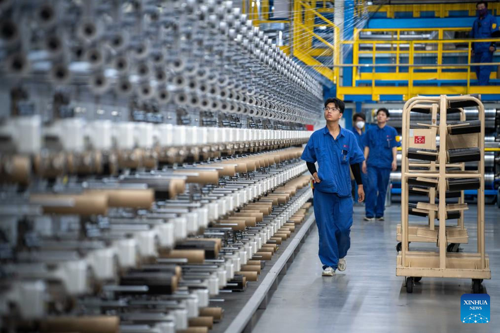 Staff members work at a spinning workshop in Jilin Chemical Fiber Group in Jilin City, northeast China's Jilin Province, July 16, 2025. Jilin Chemical Fiber Group was among the key state-owned enterprises deployed in the Northeast -- a region comprising Liaoning, Jilin, Heilongjiang, and eastern Inner Mongolia -- shortly after the founding of New China in 1949.