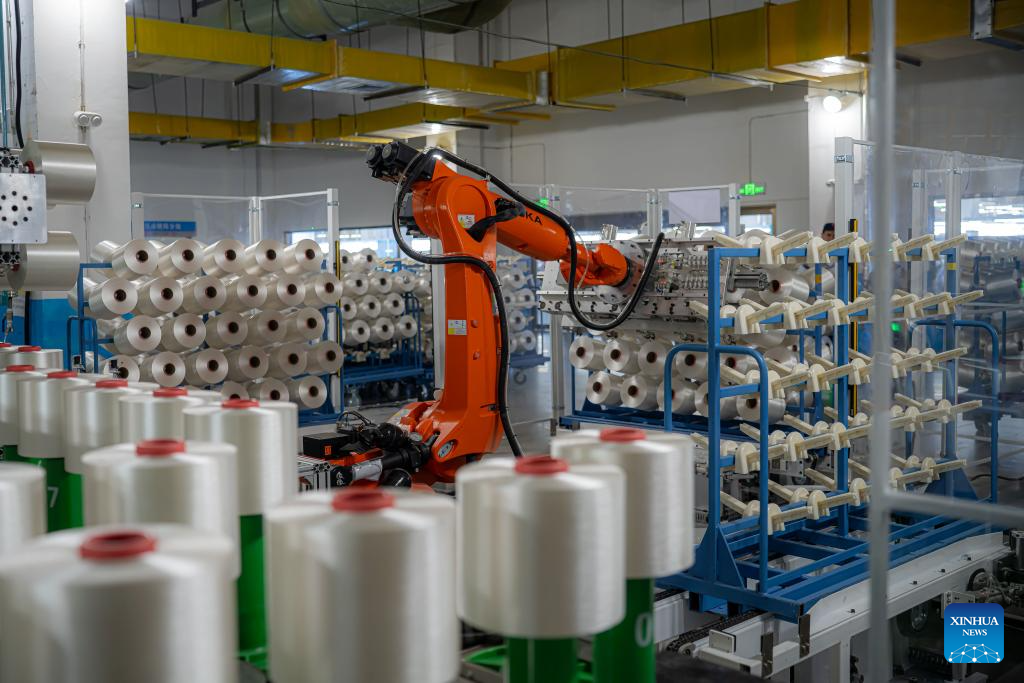 The company has been pushing forward the transformation and upgrading of the traditional chemical fiber industry through technological innovation. It introduced smart equipment to facilitate automated production. The company's products have expanded from traditional textile materials to carbon fiber. (Xinhua/Shao Zedong)