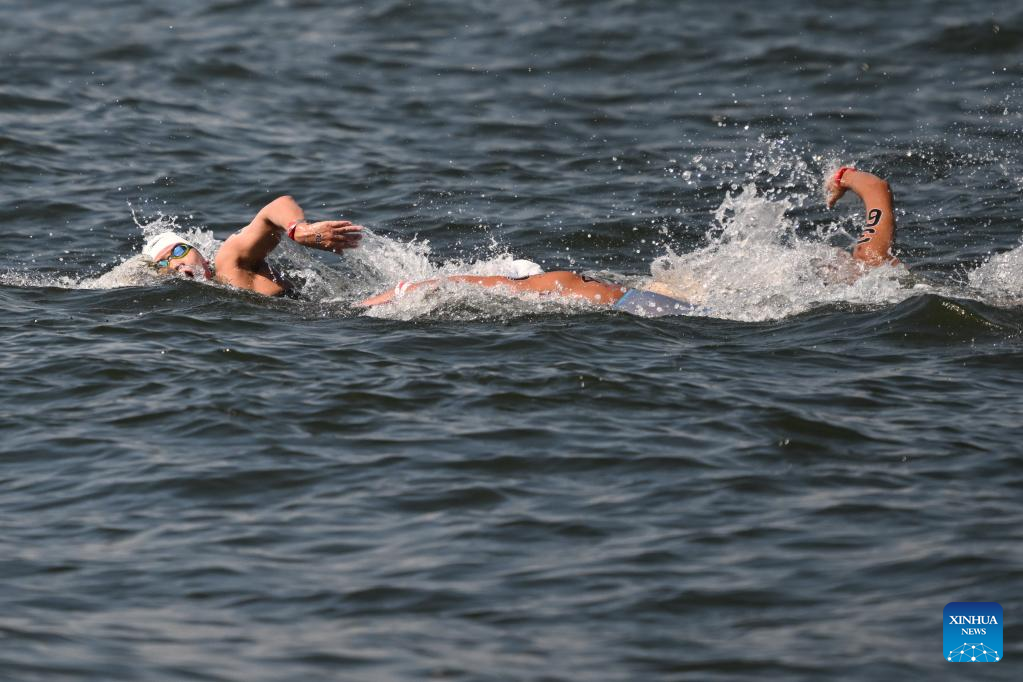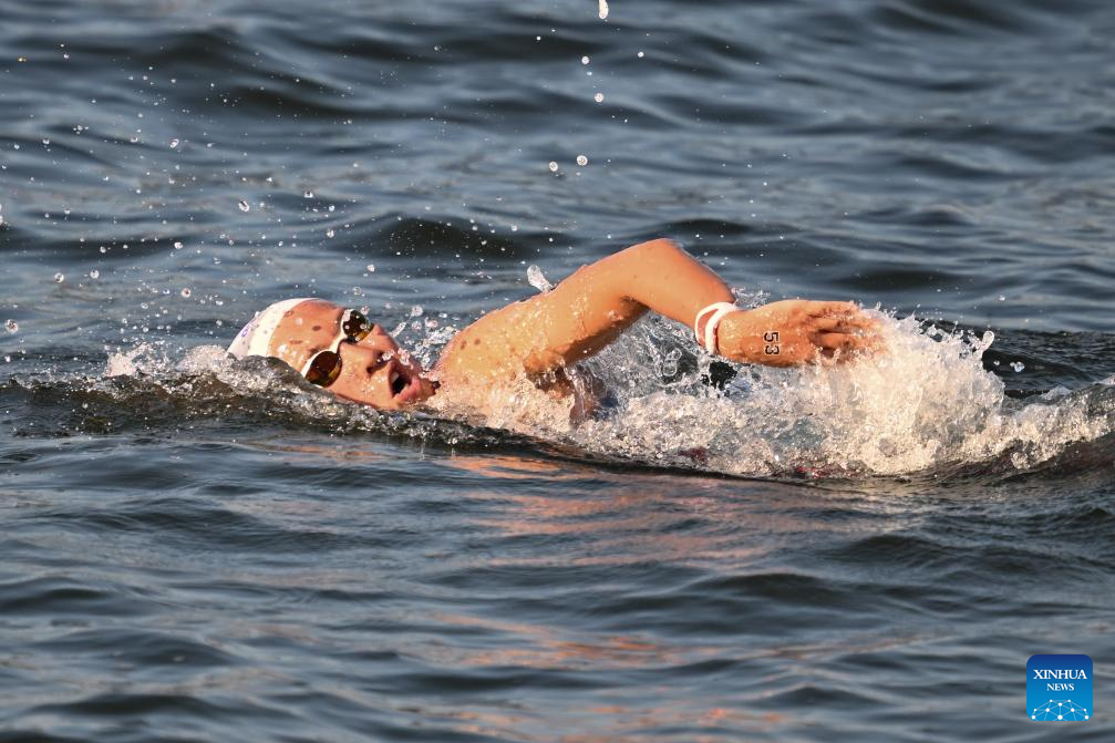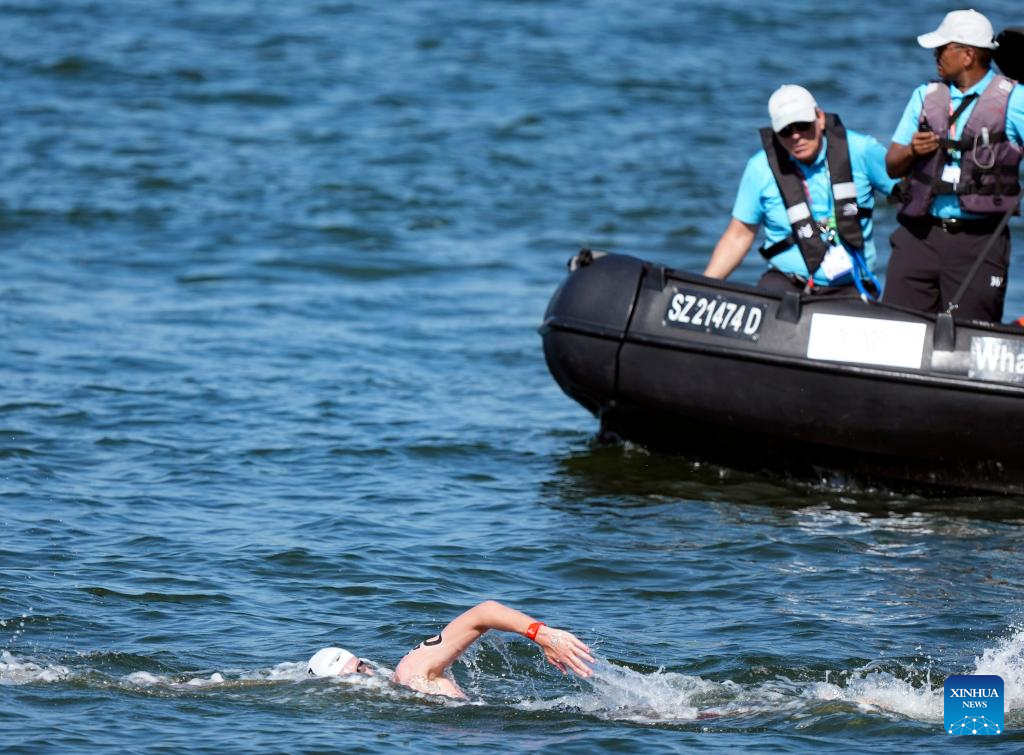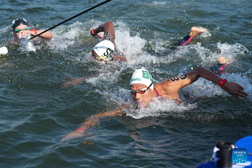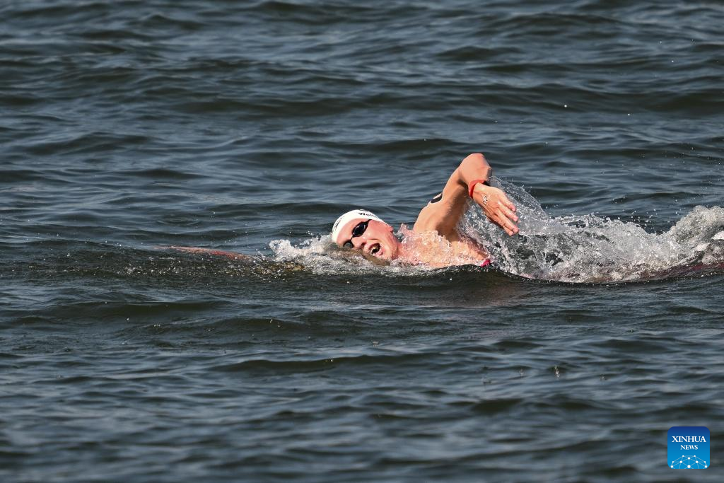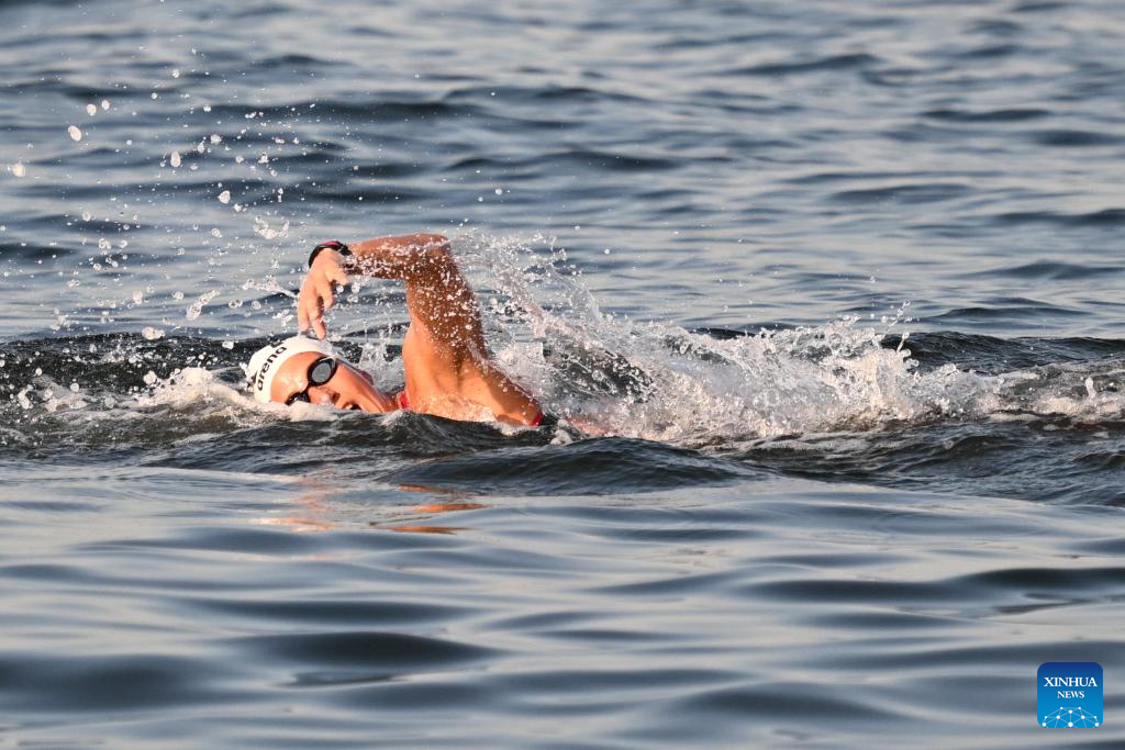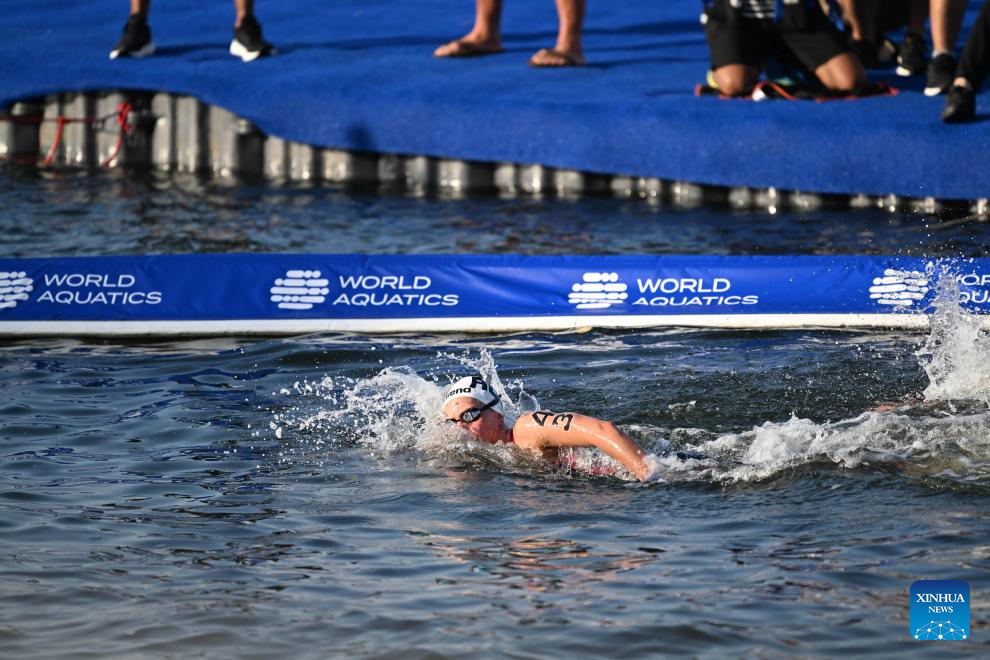 Klara Bosnjak of Croatia competes during the women's 5km final of open water at the World Aquatics Championships 2025 in Singapore, July 18, 2025. (Xinhua/Luo Yuan)