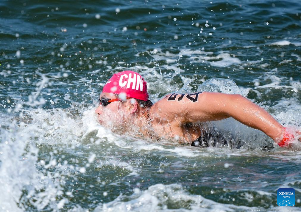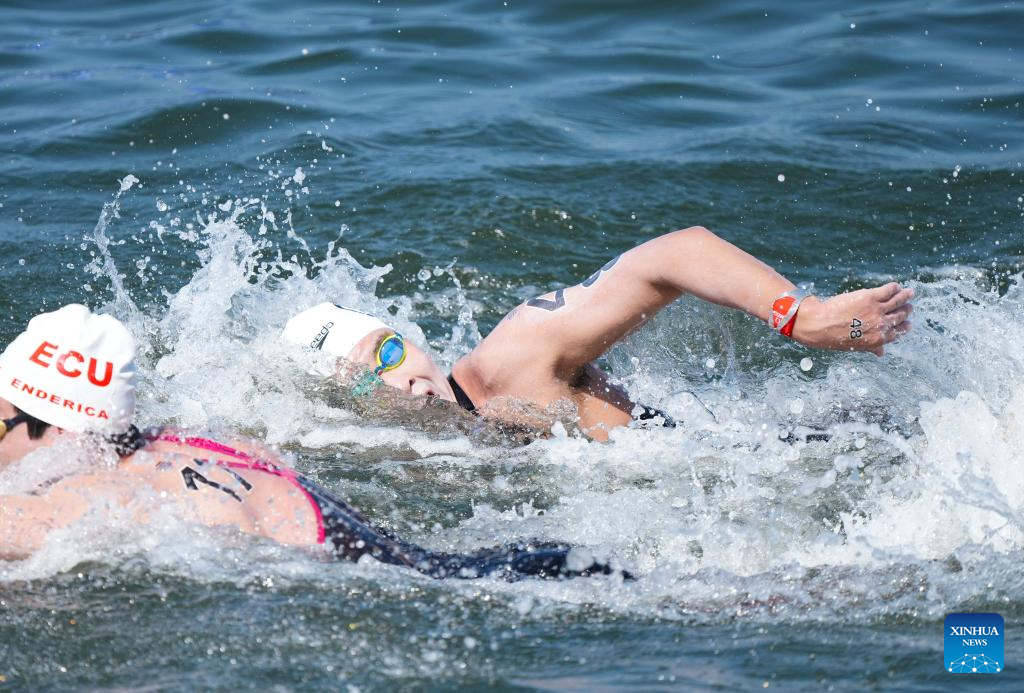 Ginevra Taddeucci of Italy competes during the women's 5km final of open water at the World Aquatics Championships 2025 in Singapore, July 18, 2025. (Xinhua/Xue Yuge)