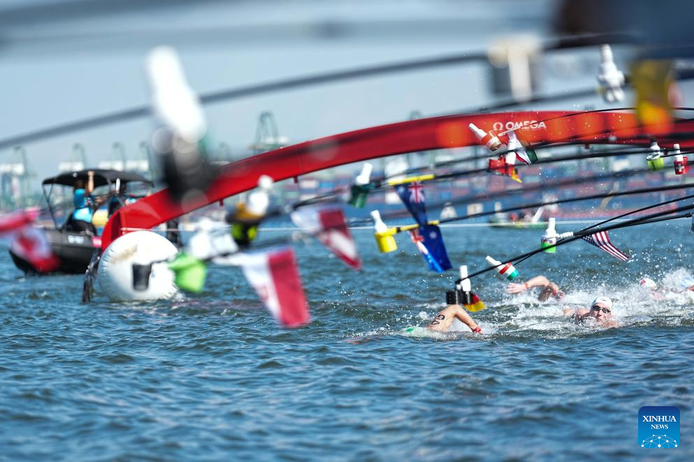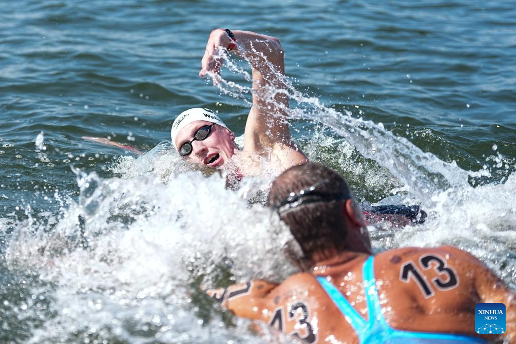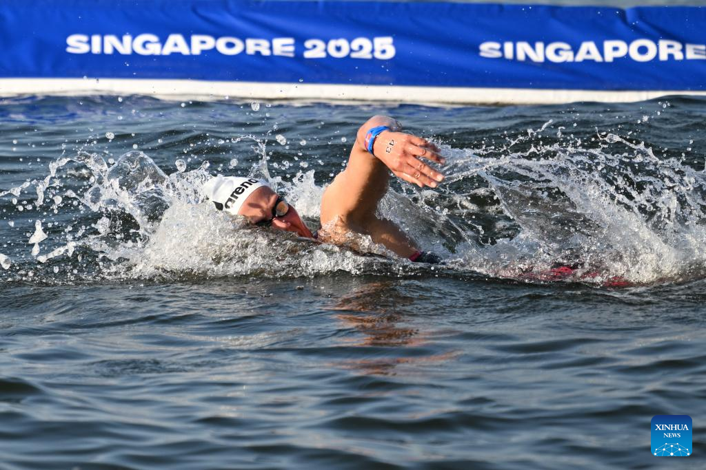 Florian Wellbrock of Germany competes during the men's 5km final of open water at the World Aquatics Championships 2025 in Singapore, July 18, 2025. (Xinhua/Xue Yuge)