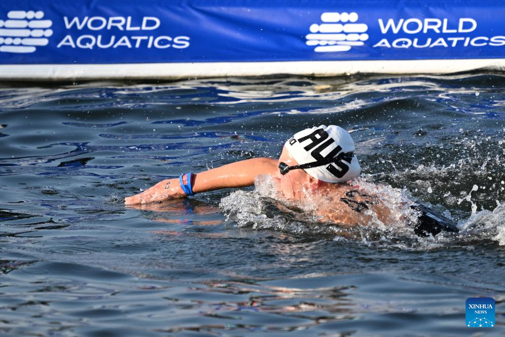 Moesha Johnson of Australia competes during the women's 5km final of open water at the World Aquatics Championships 2025 in Singapore, July 18, 2025. (Xinhua/Xue Yuge)