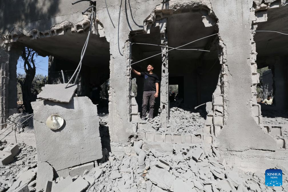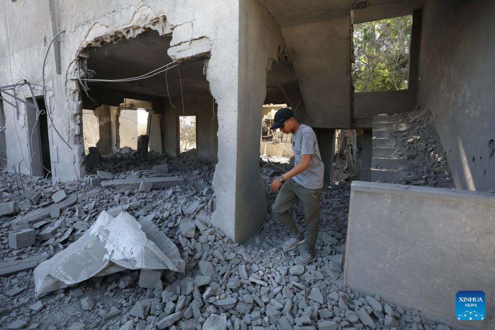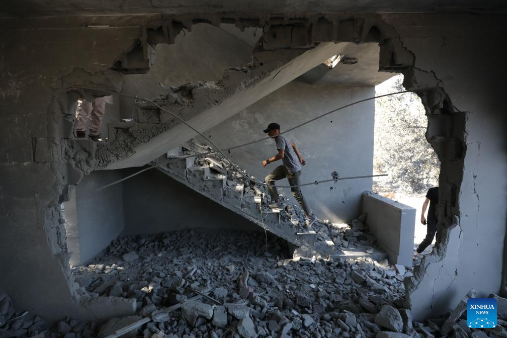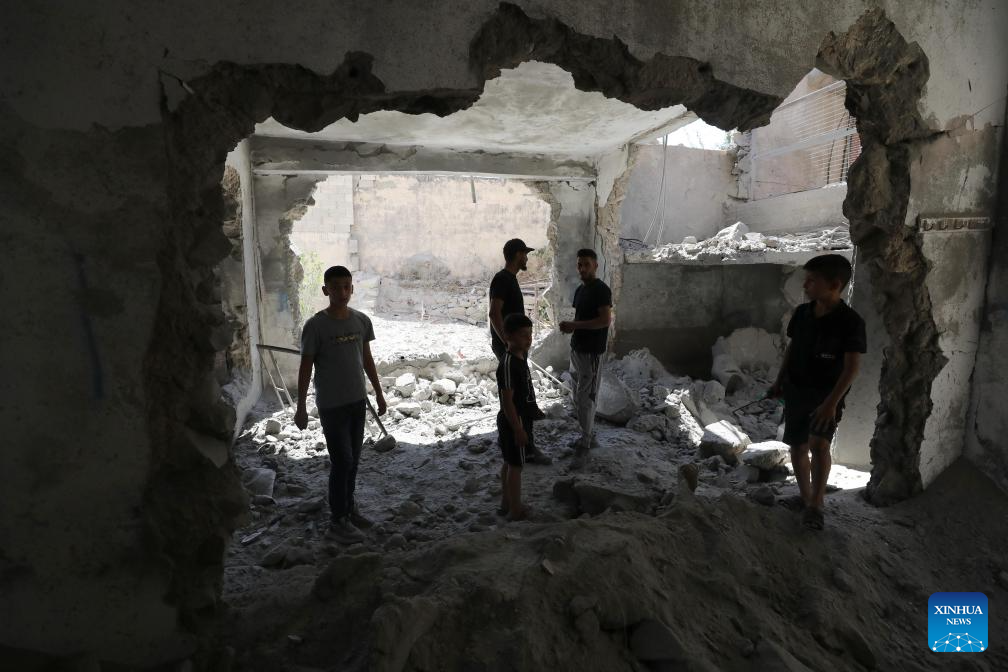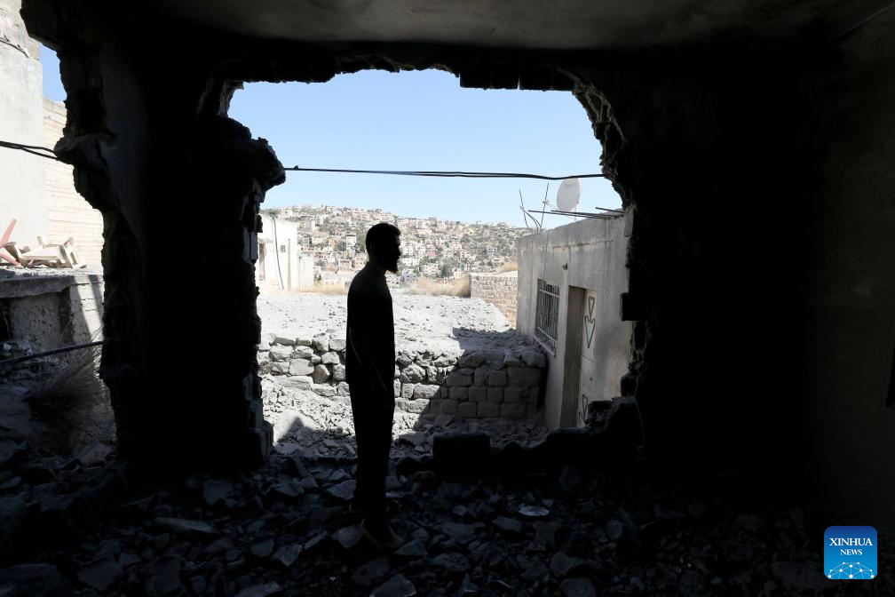 Palestinians inspect a house demolished by Israeli forces in Qabatiya town, south of the West Bank city of Jenin, on July 17, 2025. (Photo by Nidal Eshtayeh/Xinhua)