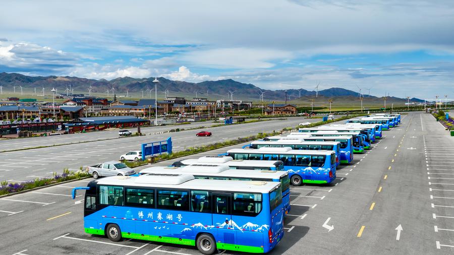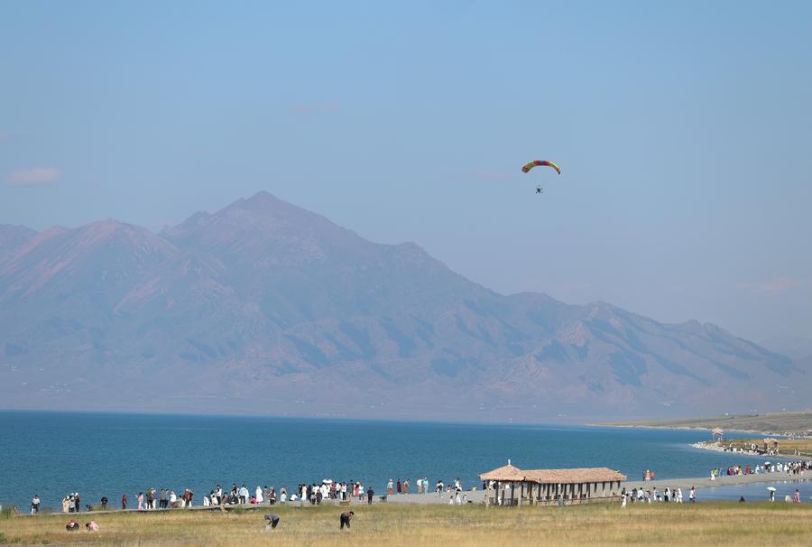 A drone photo shows the parking lot for shuttle buses at Sayram Lake scenic area in Bortala Mongolian Autonomous Prefecture, northwest China's Xinjiang Uygur Autonomous Region, July 17, 2025. (Photo by Yin Tianjie/Xinhua)An electric paraglider is seen at Sayram Lake scenic area in Bortala Mongolian Autonomous Prefecture, northwest China's Xinjiang Uygur Autonomous Region, July 17, 2025. (Xinhua/Wang Jingqiang)Tourists take an electric sailing boat at Sayram Lake scenic area in Bortala Mongolian Autonomous Prefecture, northwest China's Xinjiang Uygur Autonomous Region, July 17, 2025. (Xinhua/Wang Jingqiang)Staff members of State Grid Bortala Electric Power Supply Company communicate with a campsite worker at Sayram Lake scenic area in Bortala Mongolian Autonomous Prefecture, northwest China's Xinjiang Uygur Autonomous Region, July 16, 2025. (Xinhua/Wang Jingqiang)A drone photo shows electric sailing boats at Sayram Lake scenic area in Bortala Mongolian Autonomous Prefecture, northwest China's Xinjiang Uygur Autonomous Region, July 17, 2025. (Photo by Zhang Limin/Xinhua)This photo shows a low-carbon campsite at Sayram Lake scenic area in Bortala Mongolian Autonomous Prefecture, northwest China's Xinjiang Uygur Autonomous Region, July 16, 2025. (Xinhua/Wang Jingqiang)Staff members of State Grid Bortala Electric Power Supply Company patrol at Sayram Lake scenic area to ensure power supply in Bortala Mongolian Autonomous Prefecture, northwest China's Xinjiang Uygur Autonomous Region, July 16, 2025. (Xinhua/Geng Xinning)A drone photo shows staff members of State Grid Bortala Electric Power Supply Company patrolling at Sayram Lake scenic area to ensure power supply in Bortala Mongolian Autonomous Prefecture, northwest China's Xinjiang Uygur Autonomous Region, July 16, 2025. (Photo by Zhang Limin/Xinhua)A drone photo shows staff members of State Grid Bortala Electric Power Supply Company patrolling near Sayram Lake scenic area to ensure power supply in Bortala Mongolian Autonomous Prefecture, northwest China's Xinjiang Uygur Autonomous Region, July 17, 2025. (Photo by Yin Tianjie/Xinhua)■