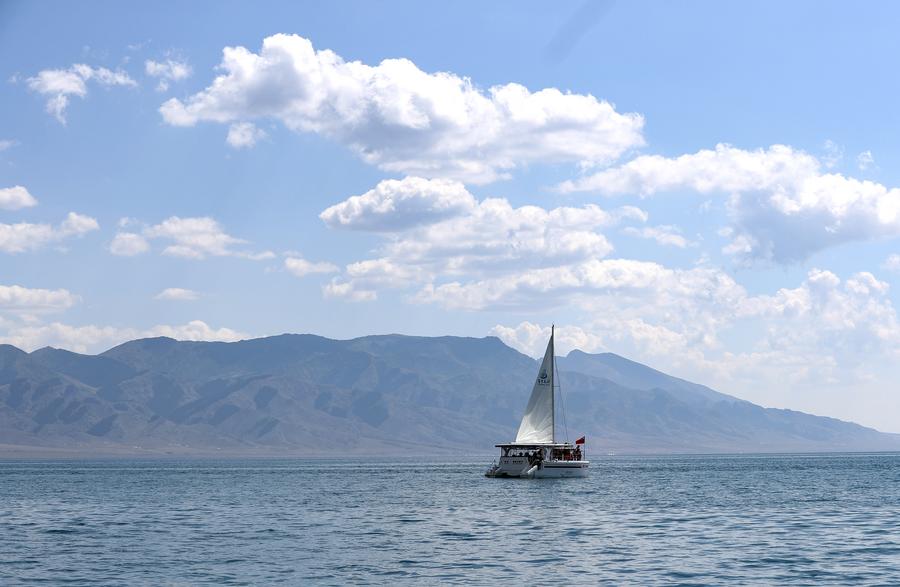ZHAOSU, July 19 (Xinhua) -- Nestled in the Tianshan Mountains, Sayram Lake, Xinjiang's highest and largest alpine lake, has emerged as a trailblazer in sustainable tourism after achieving full renewable-powered operations in July 2022. The pristine lake, a key ecological and cultural asset, has seen visitor numbers climb steadily ever since.