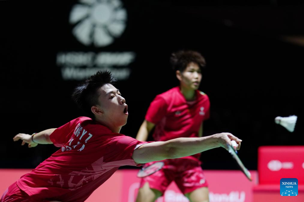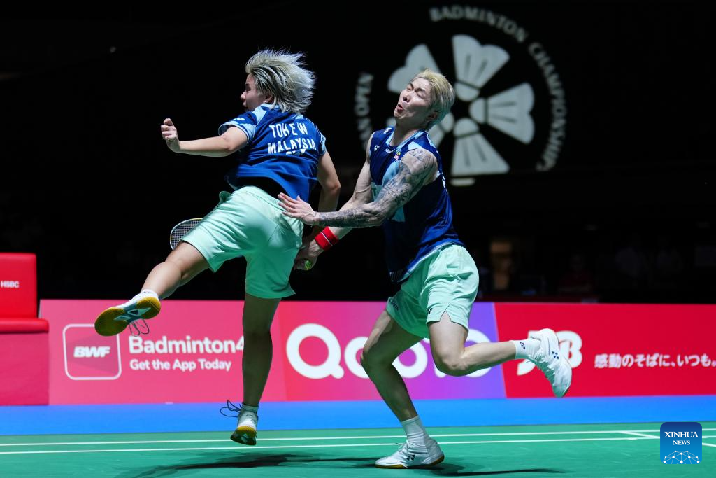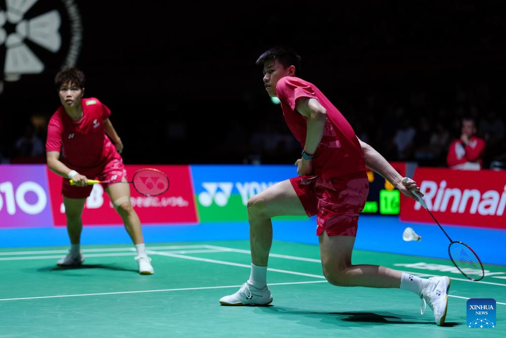 Chen Tang Jie (R)/Toh Ee Wei of Malaysia compete during the mixed doubles semifinal match between Jiang Zhenbang/Wei Yaxin of China and Chen Tang Jie/Toh Ee Wei of Malaysia at the Japan Badminton Open 2025 in Tokyo, Japan, July 19, 2025. (Xinhua/Jia Haocheng)