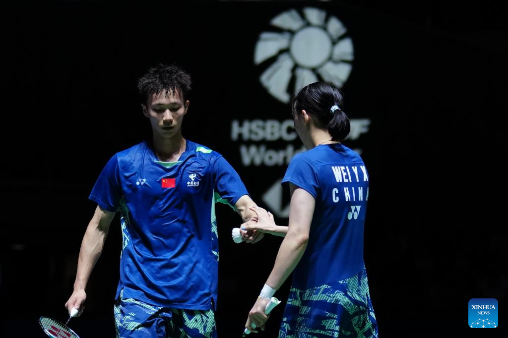 Jiang Zhenbang/Wei Yaxin (R) of China compete during the mixed doubles semifinal match between Jiang Zhenbang/Wei Yaxin of China and Chen Tang Jie/Toh Ee Wei of Malaysia at the Japan Badminton Open 2025 in Tokyo, Japan, July 19, 2025. (Xinhua/Jia Haocheng)