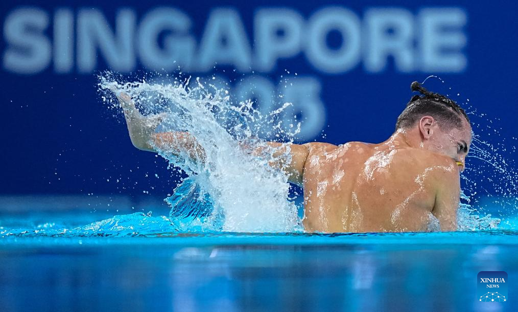 Filippo Pelati of Italy performs during the men's solo technical final of artistic swimming at the World Aquatics Championships in Singapore, July 19, 2025. (Xinhua/Luo Yuan)
