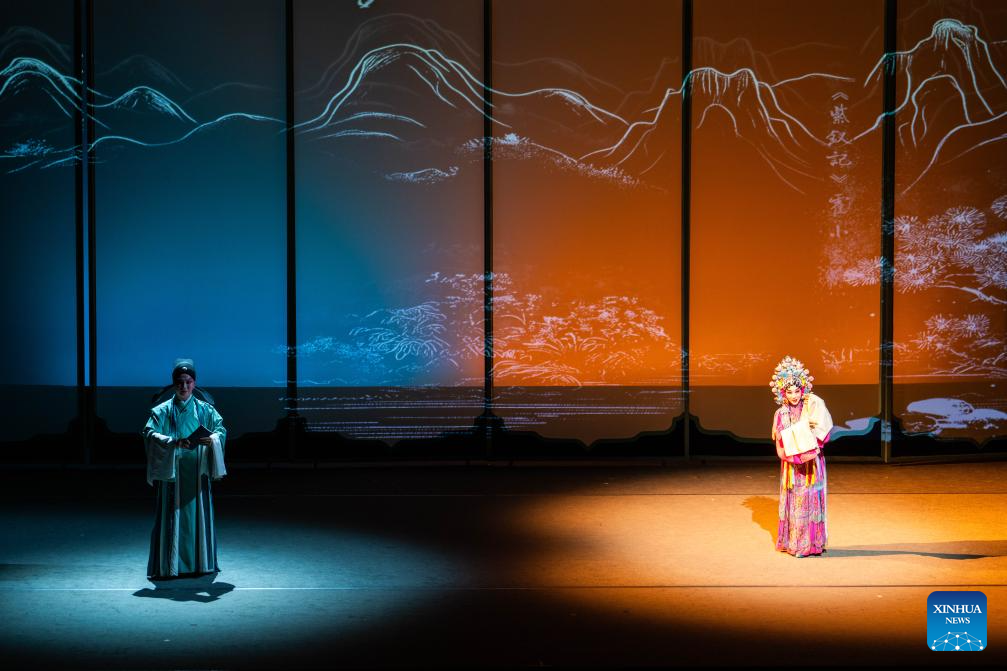 Actors are pictured during an immersive Kunqu Opera show in Chenzhou City, central China's Hunan Province, July 18, 2025. The centuries-old art of Kunqu Opera has been listed by the United Nations Educational, Scientific and Cultural Organization (UNESCO) as an intangible cultural heritage. Kunqu artists are injecting modern elements to enhance its charm to younger audience today. (Xinhua/Chen Sihan)