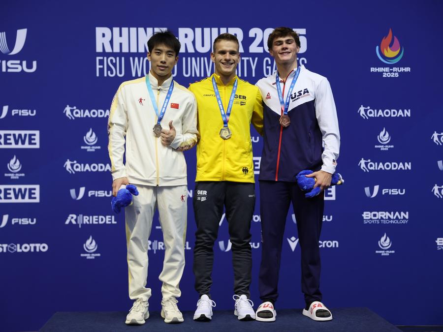 ESSEN, Germany, July 19 (Xinhua) -- China obtained its second gold from diving, while team USA led the medal table with five golds after collecting two more from the swimming pool on Friday at the FISU World University Games.