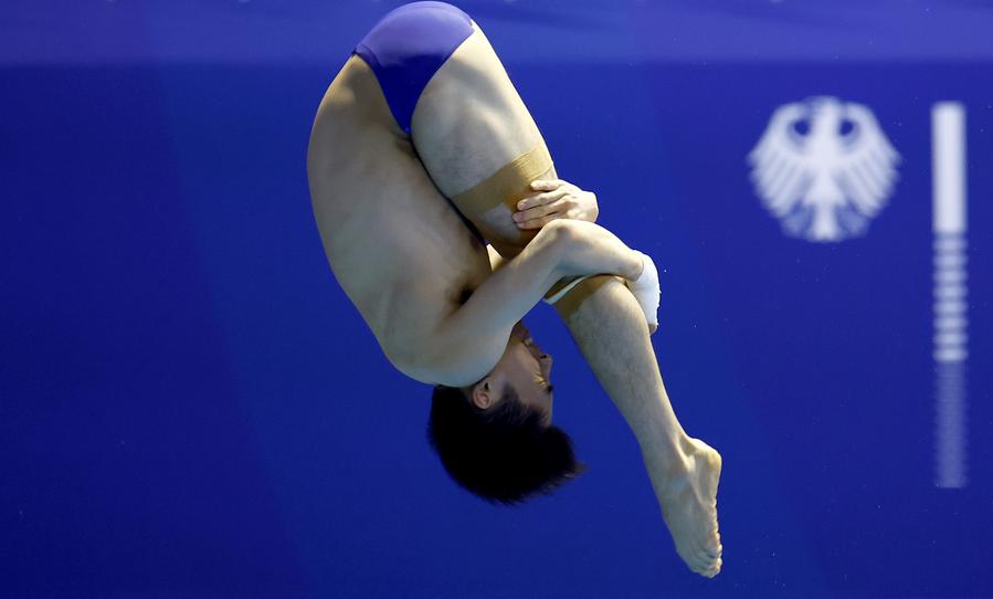 Moritz Wesemann, who was placed just seventh in preliminary, won the host's second diving gold from the men's 3m springboard with 454.20 points, closely followed by China's Hu Yukang with a slight deficit of 5.75 points. U.S. diver Luke Alexander Sitz came third, 24.45 points adrift of the winner.