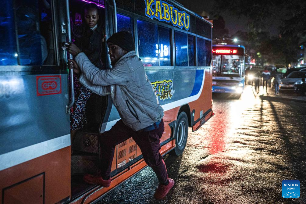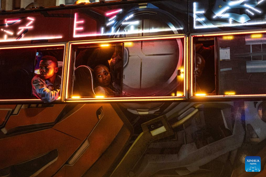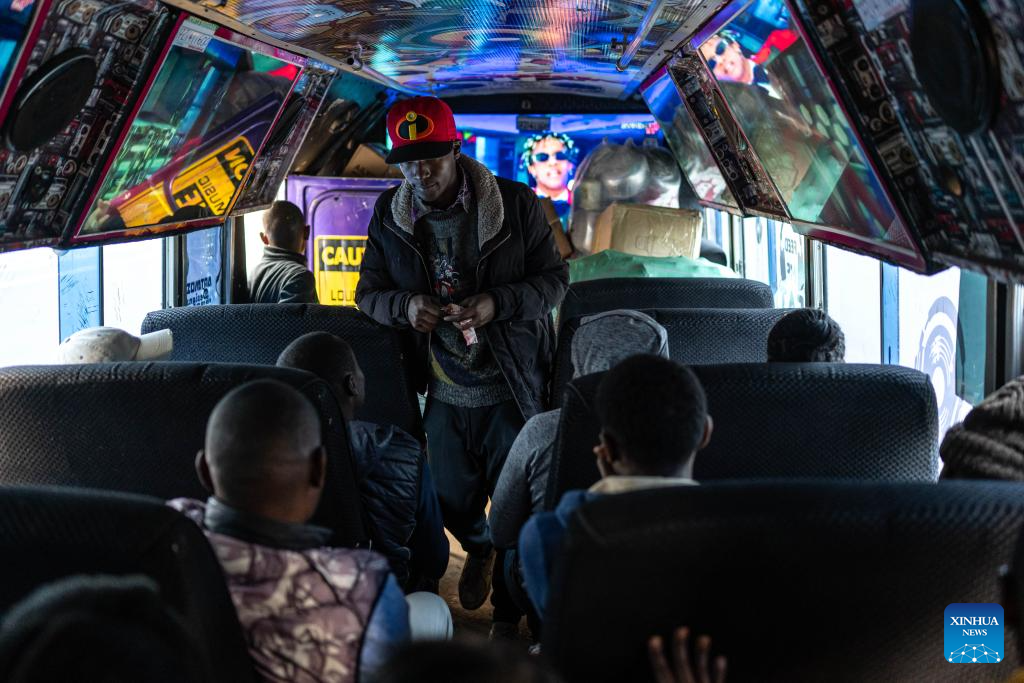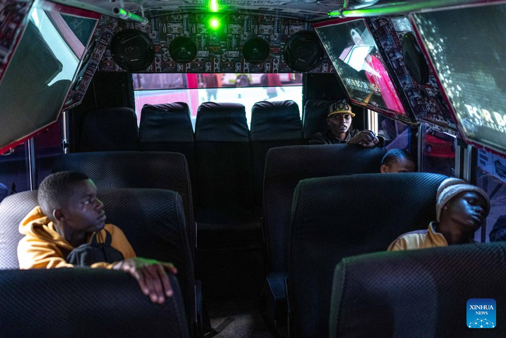 This photo taken on July 18, 2025 shows the passengers on a "matatu" in Nairobi, Kenya.