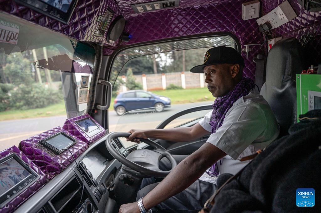The word "matatu" is a Swahili word meaning "three" which originated from the three pennies passengers used to pay when the industry began in the 1970s. (Xinhua/Wang Guansen)