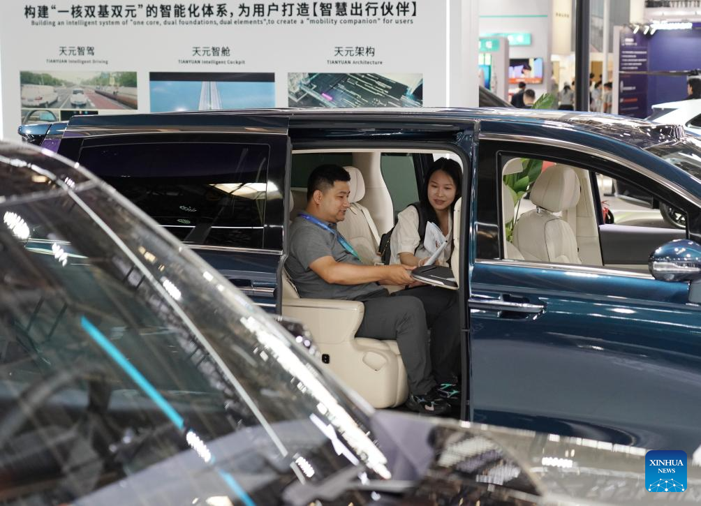In addition to the Smart Vehicle Chain area, the Advanced Manufacturing Chain area and the Digital Technology Chain area also featured products and technological applications related to the EV industry. (Xinhua/Ju Huanzong)