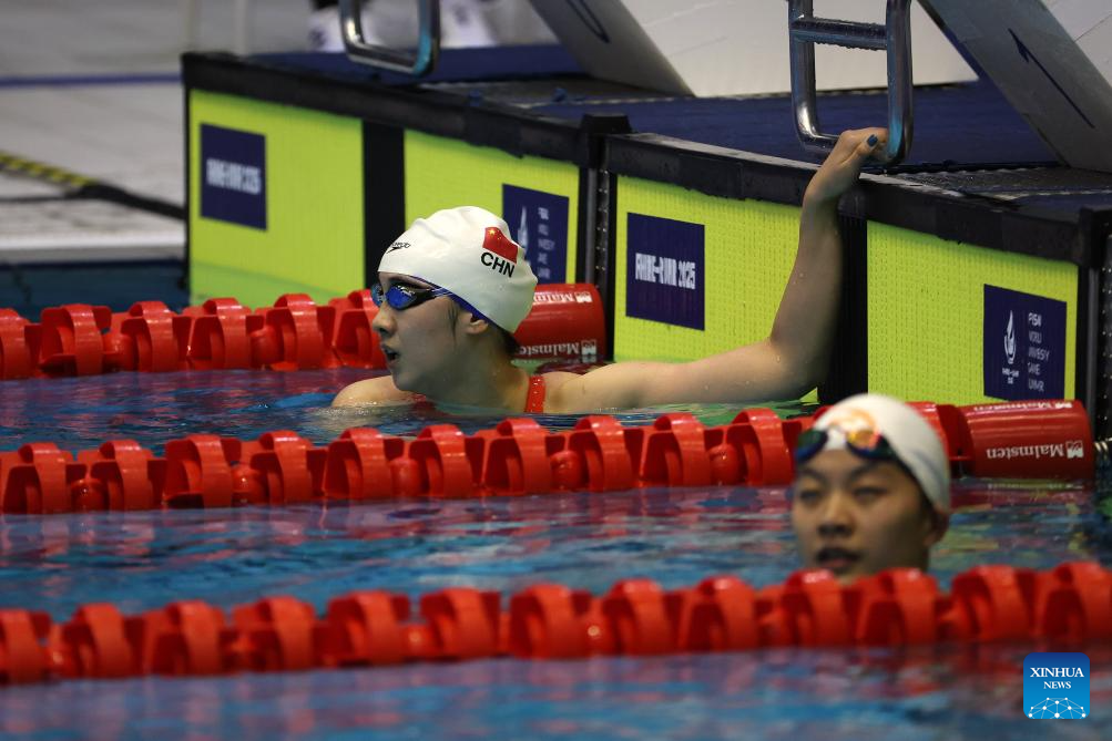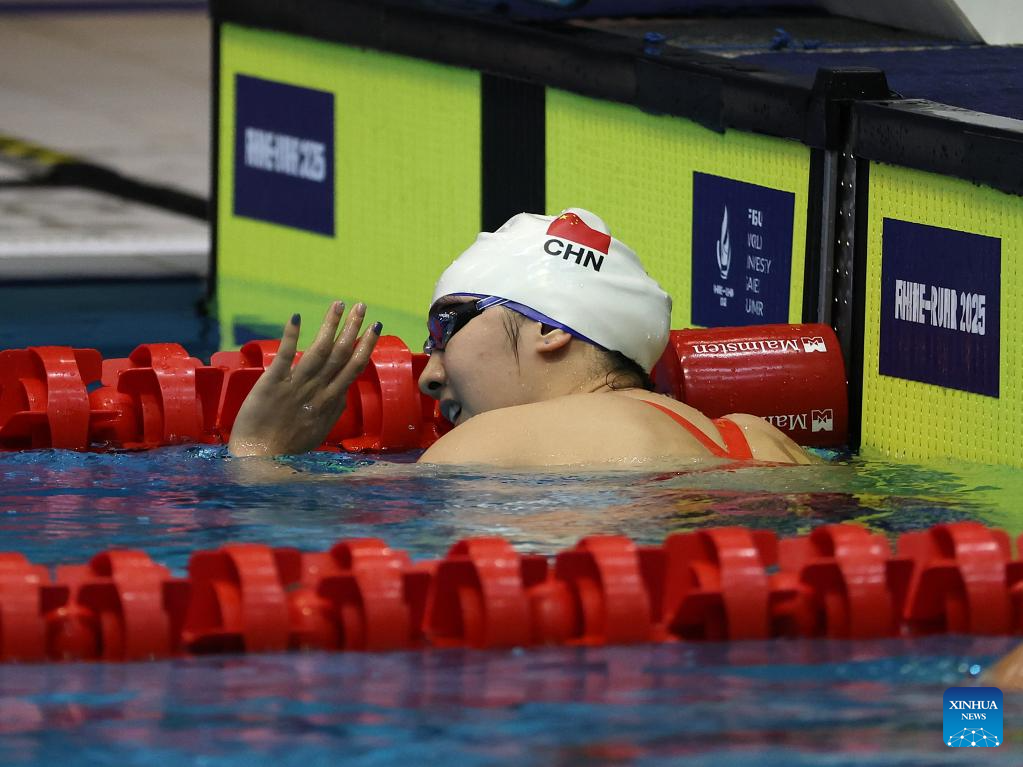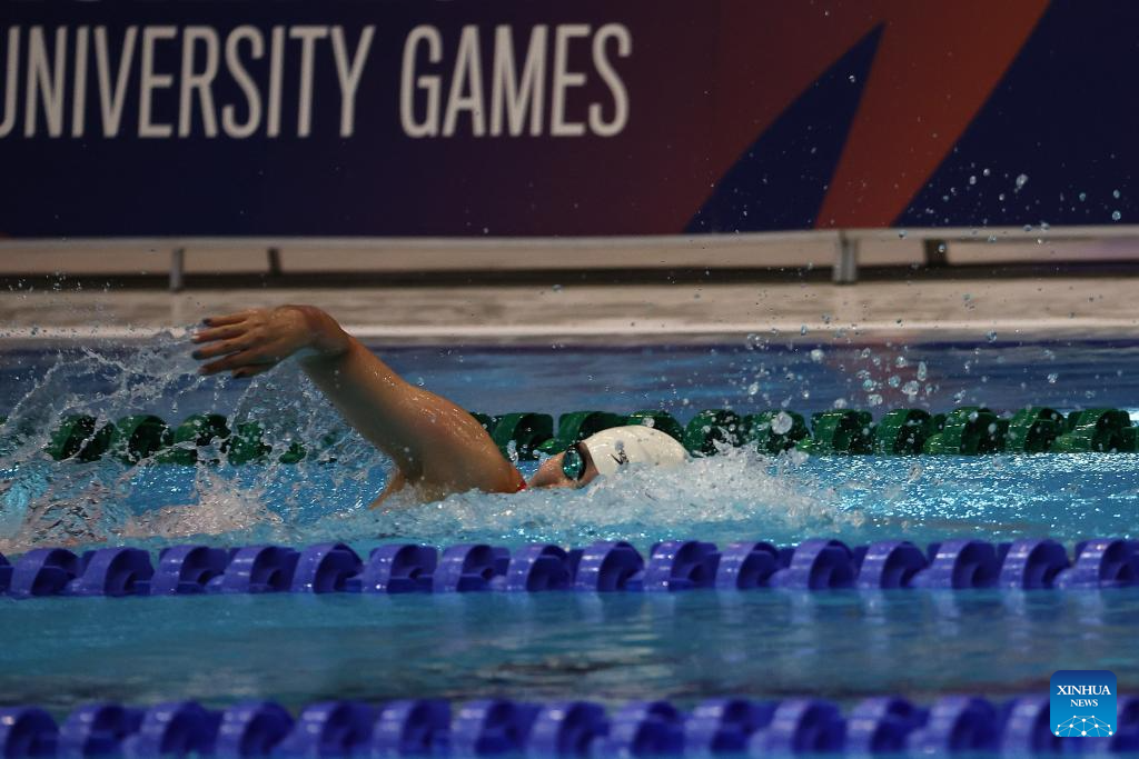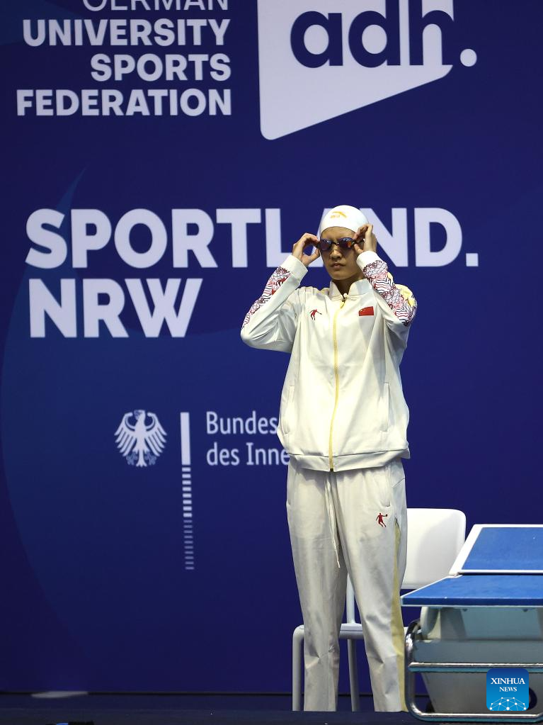 Ai Yanhan of China competes during the women's 100m freestyle final of swimming at the Rhine-Ruhr 2025 FISU World University Games in Berlin, Germany, July 19, 2025. (Xinhua/Du Zheyu)