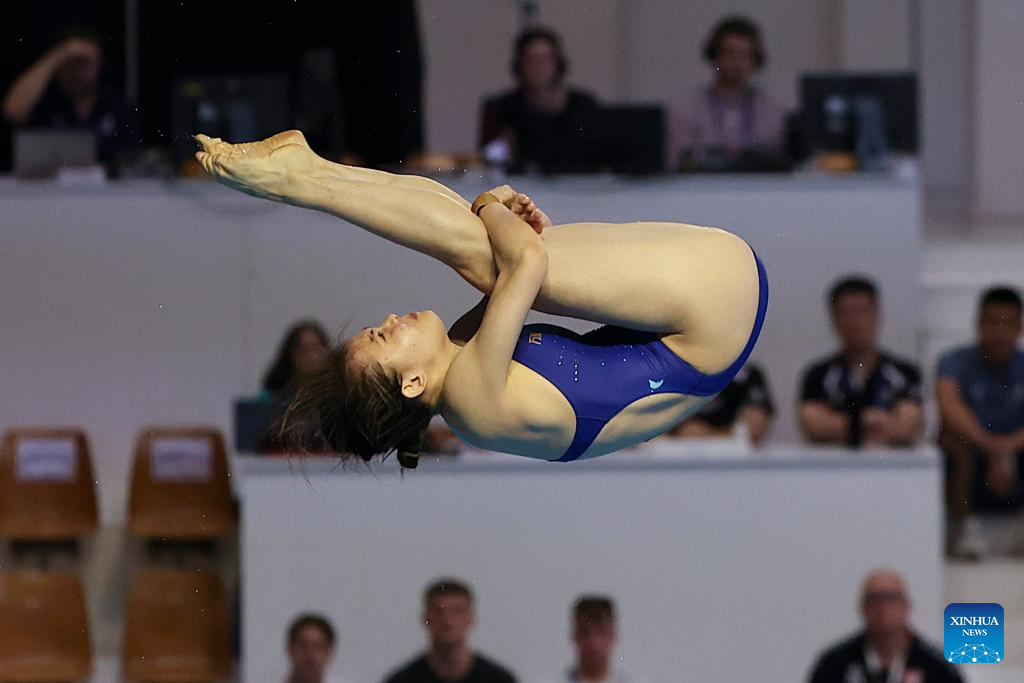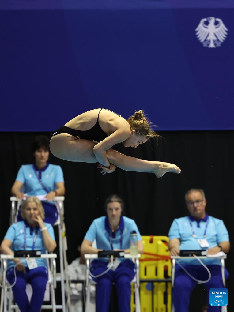 Jette Mueller of Germany competes during the mixed 3m & 10m team final of diving at the Rhine-Ruhr 2025 FISU World University Games in Berlin, Germany, July 19, 2025. (Xinhua/Du Zheyu)