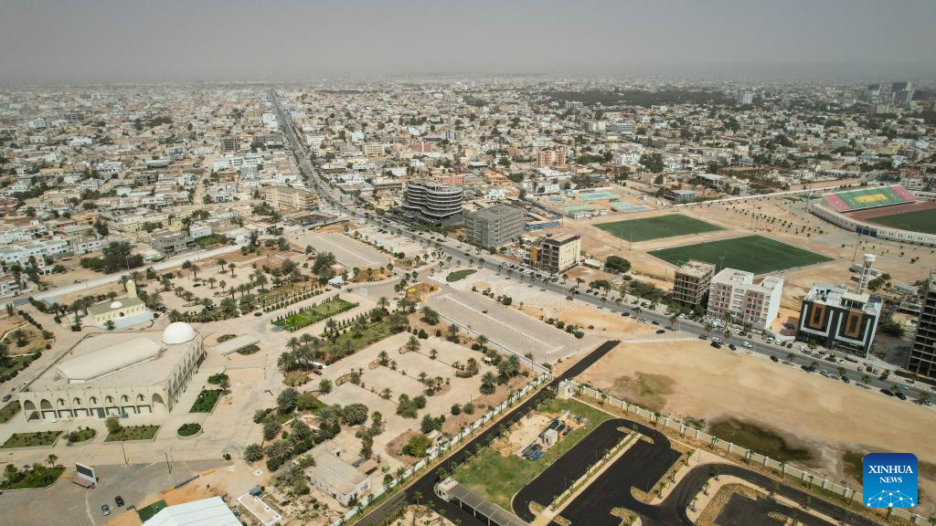 An aerial drone photo taken on May 20, 2025 shows the cityscape in Nouakchott, Mauritania. Nouakchott, on the edge of the Sahara Desert, is the capital of Mauritania and its political, economic, and cultural center. (Xinhua/Si Yuan)