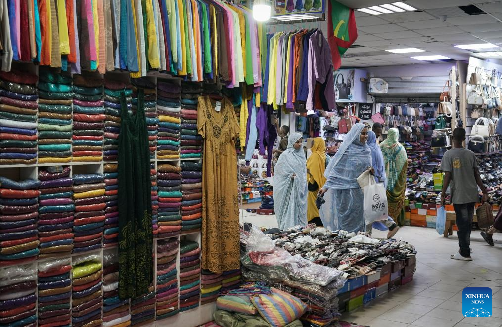 People visit a local market in Nouakchott, Mauritania, on July 16, 2025. Nouakchott, on the edge of the Sahara Desert, is the capital of Mauritania and its political, economic, and cultural center. (Xinhua/Han Xu)
